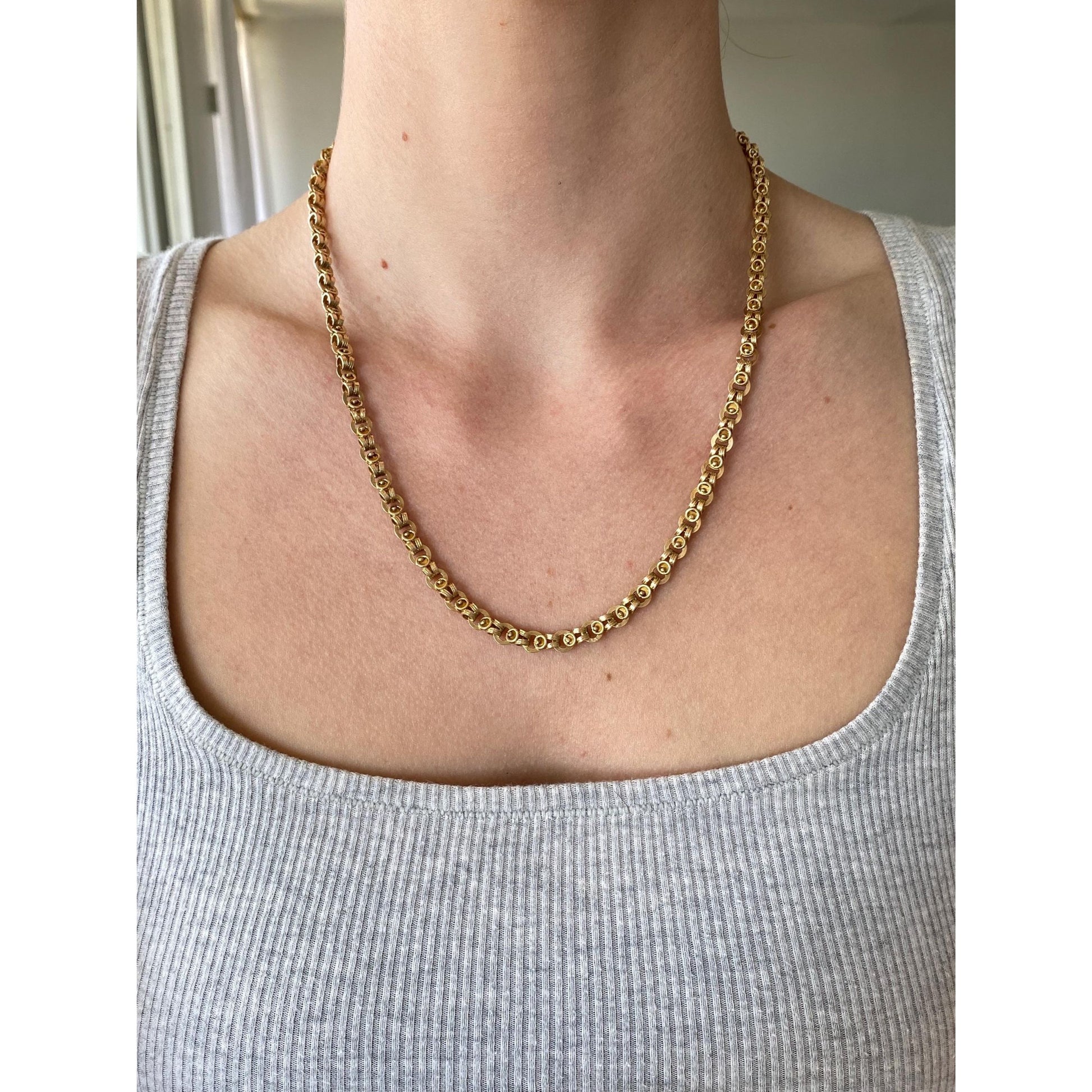 Vintage Solid 14k Yellow Gold Fancy Link Chain Necklace - 19.75 inches