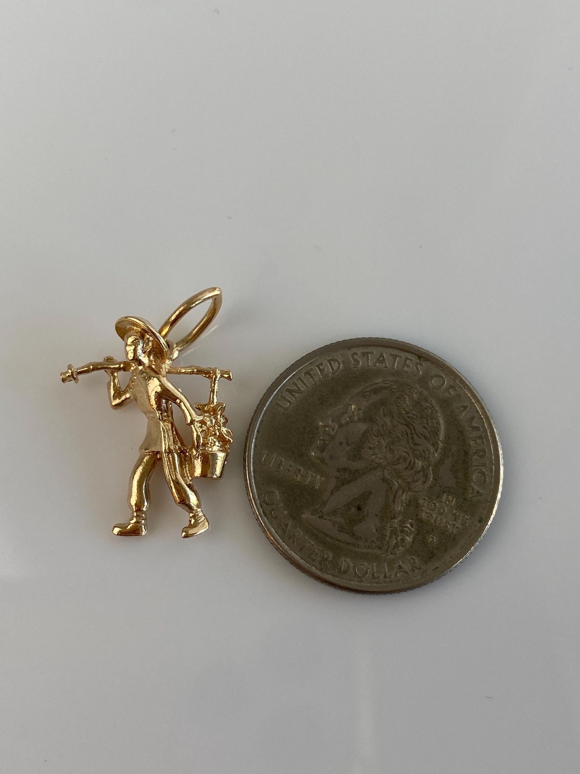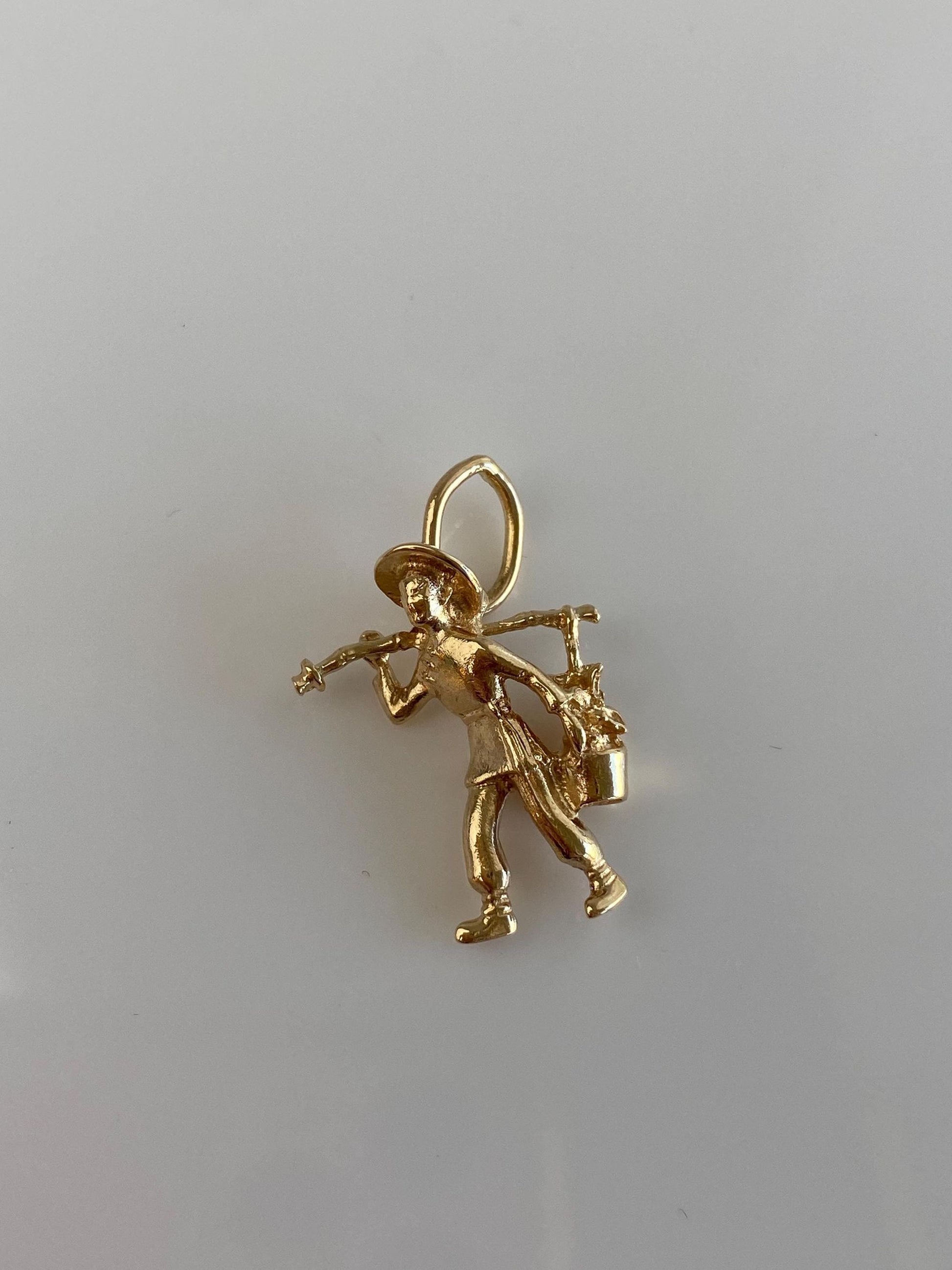 Vintage Solid 14k Yellow Gold Farmer Harvester Charm