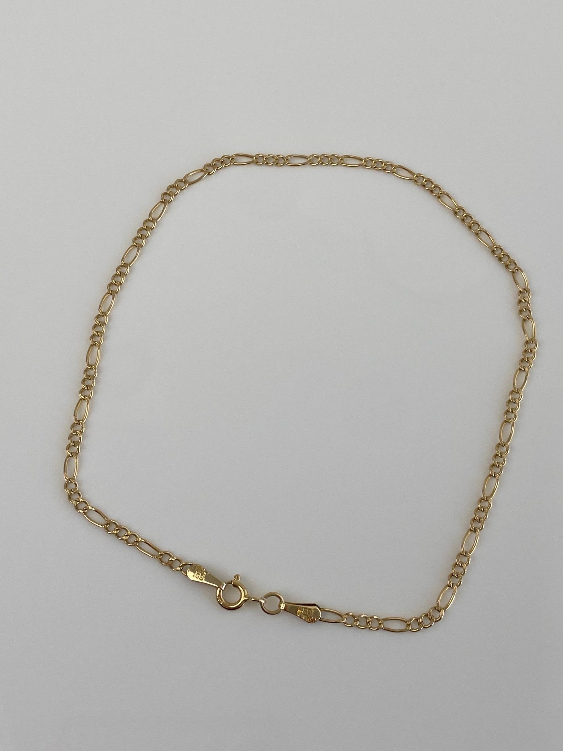 Vintage Solid 14k Yellow Gold Figaro Chain Anklet Bracelet - 10.75 inches