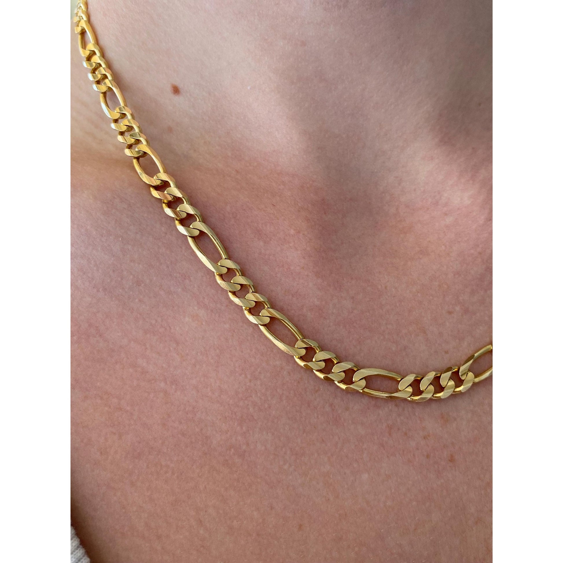 Vintage Solid 14k Yellow Gold Figaro Chain Necklace - 18.25 inches