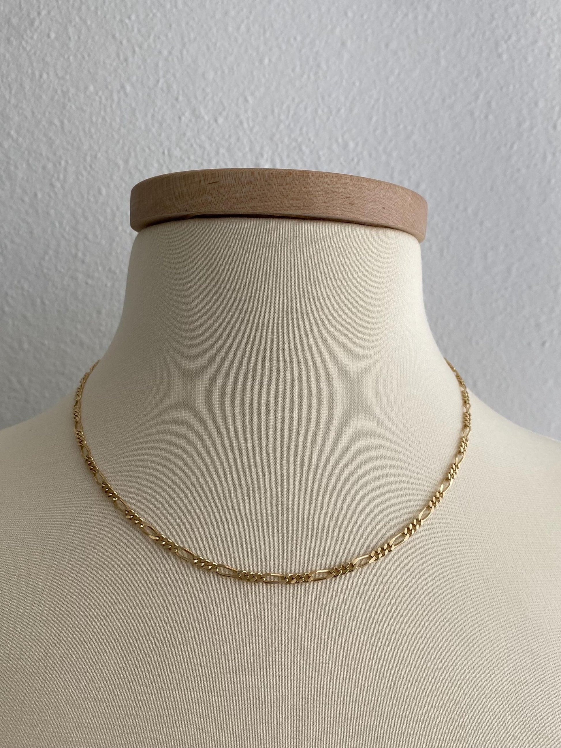 Vintage Solid 14k Yellow Gold Figaro Chain Necklace - 18.5 inches