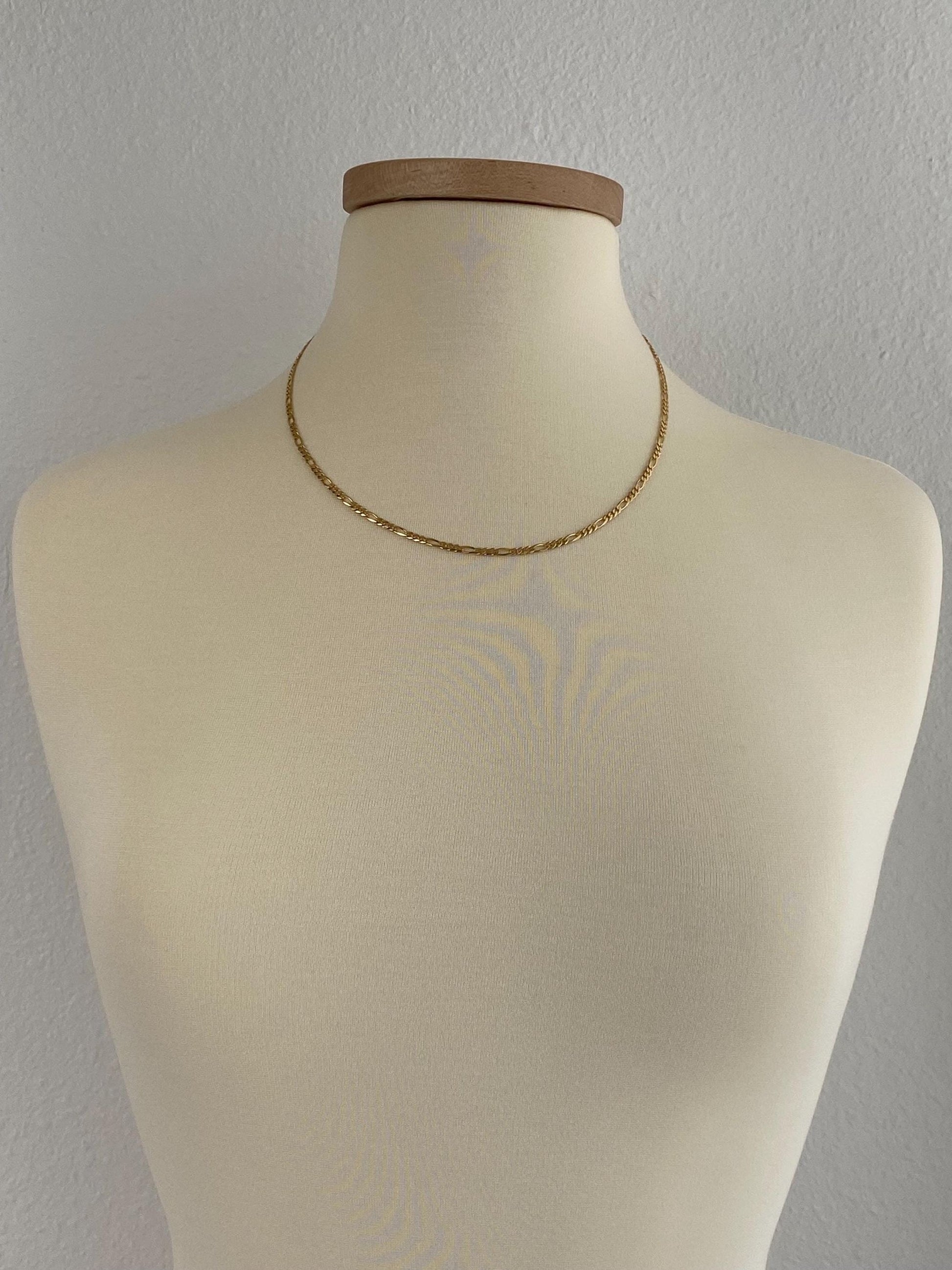 Vintage Solid 14k Yellow Gold Figaro Chain Necklace - 20.25 inches