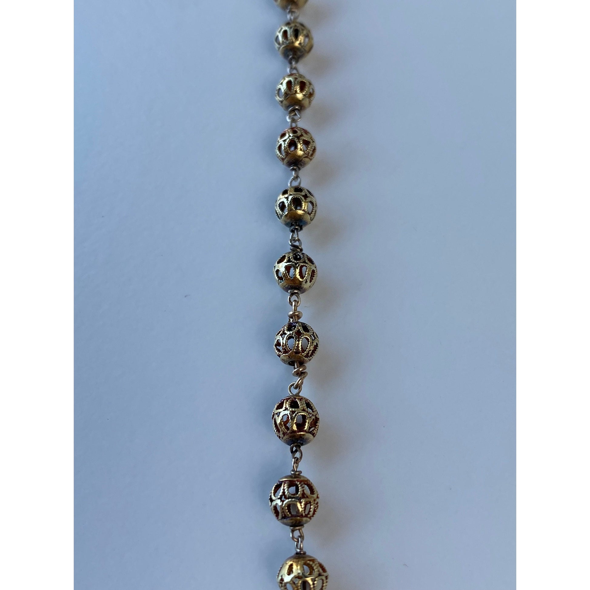 Vintage Solid 14k Yellow Gold Filigree Ball Link Bracelet - 7.25 Inches