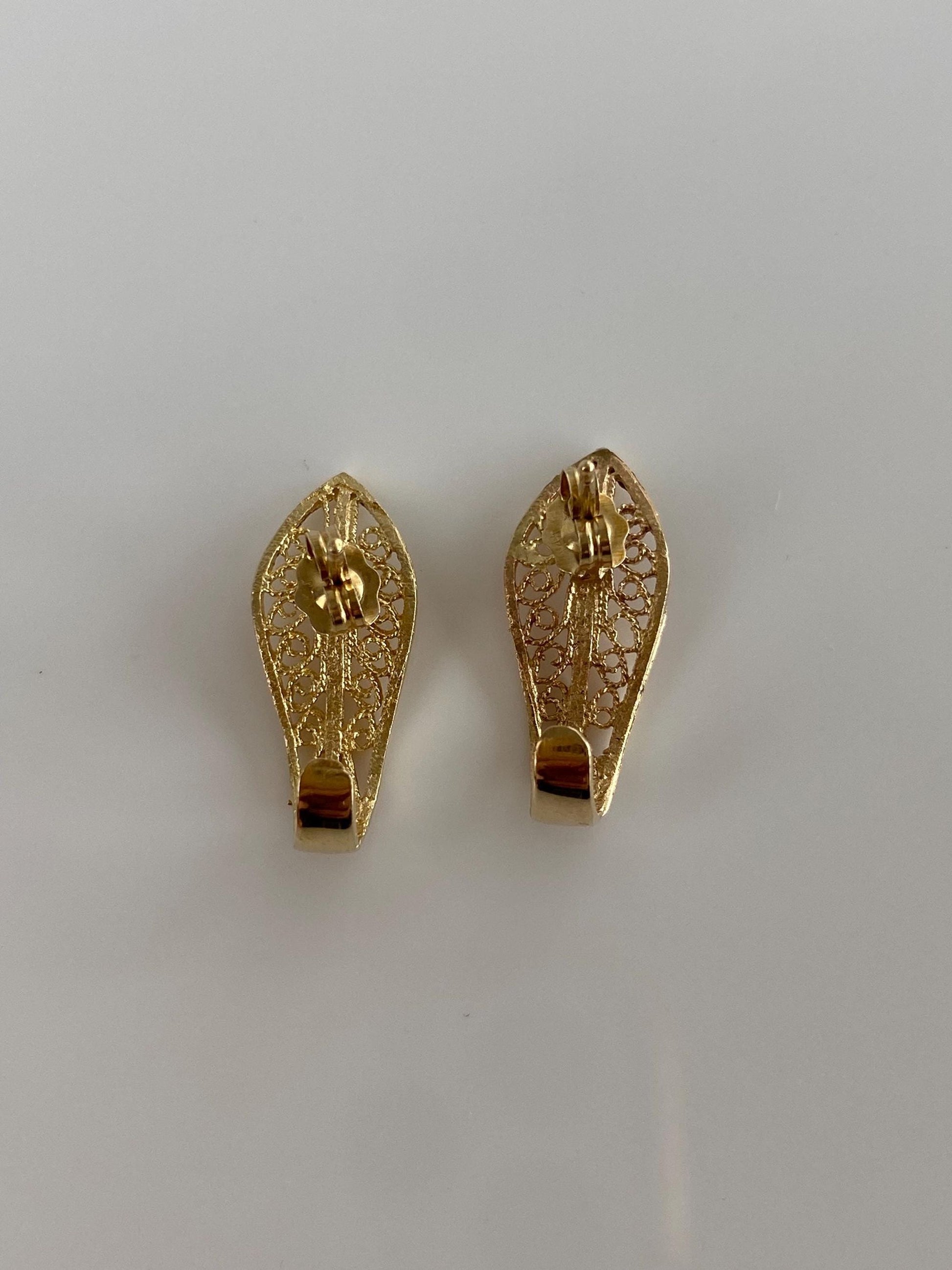 Vintage Solid 14k Yellow Gold Filigree Diamond Cut Drop Earrings
