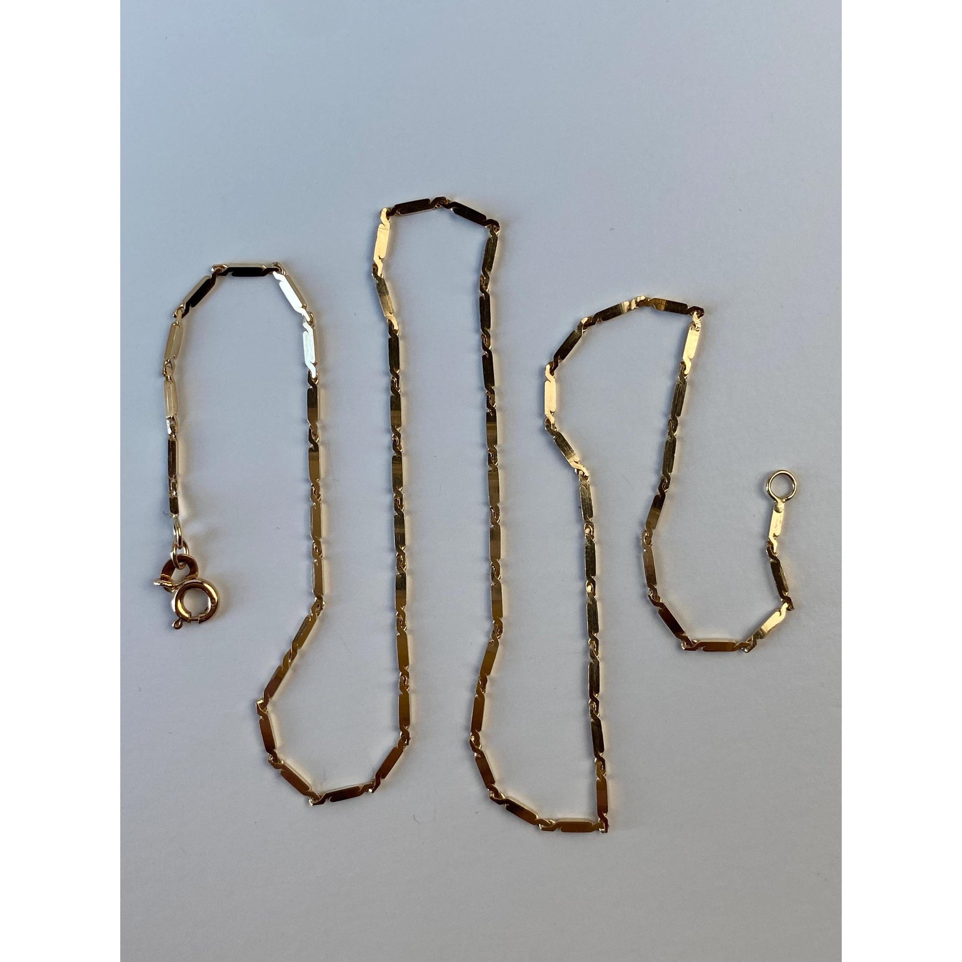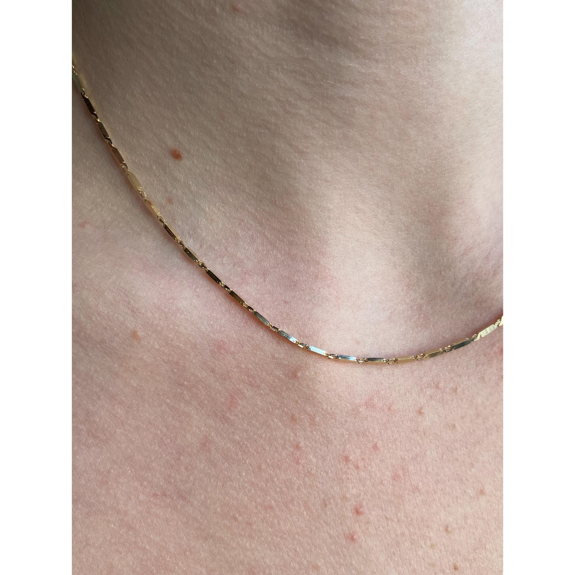 Vintage Solid 14k Yellow Gold Flat Bar Link Chain Necklace - 16 inches