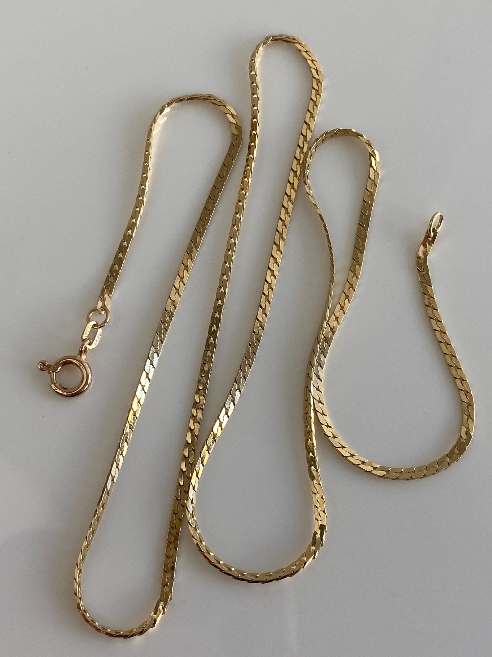Vintage Solid 14k Yellow Gold Flat Curb Chain Necklace - 20 inches