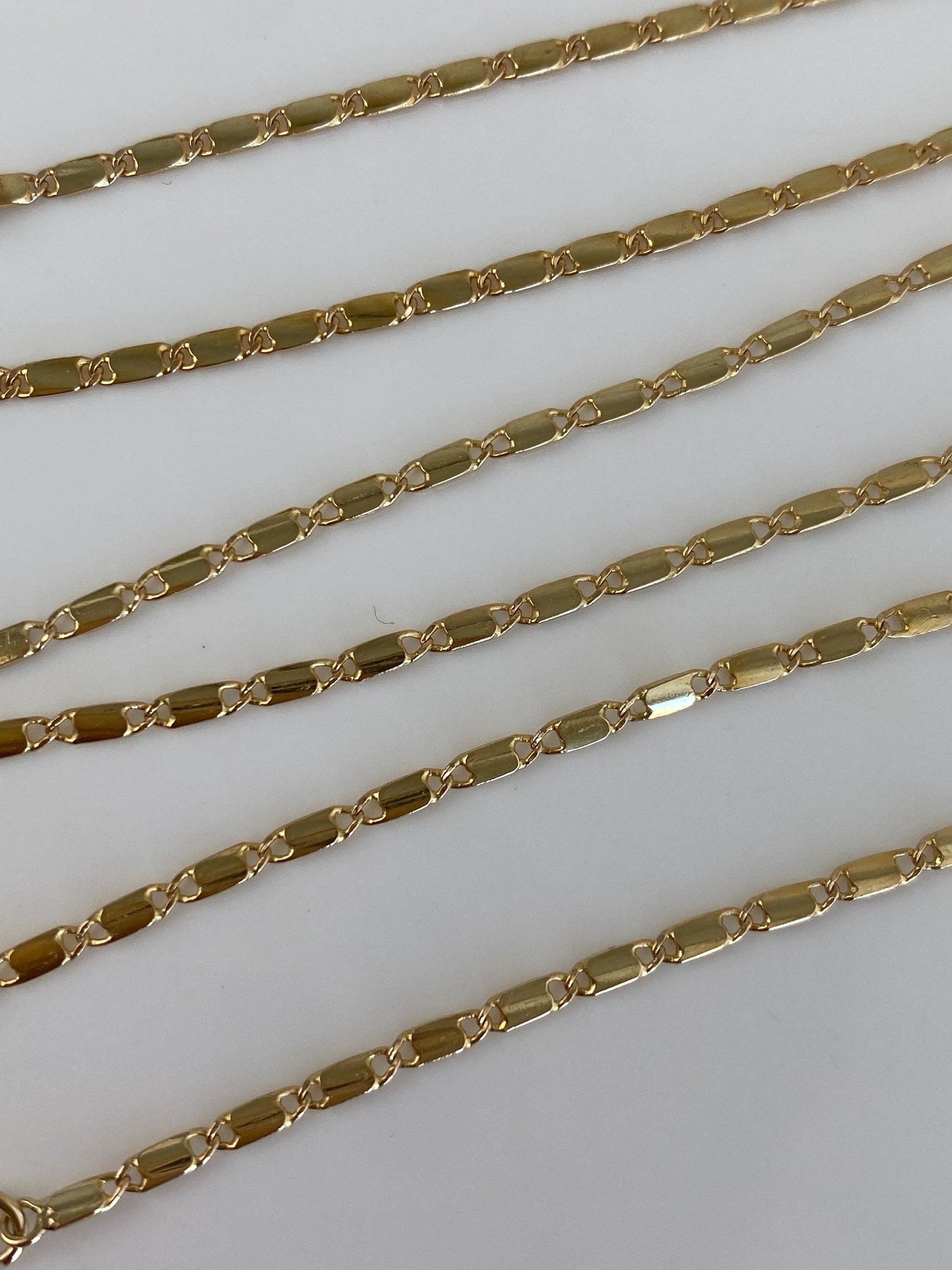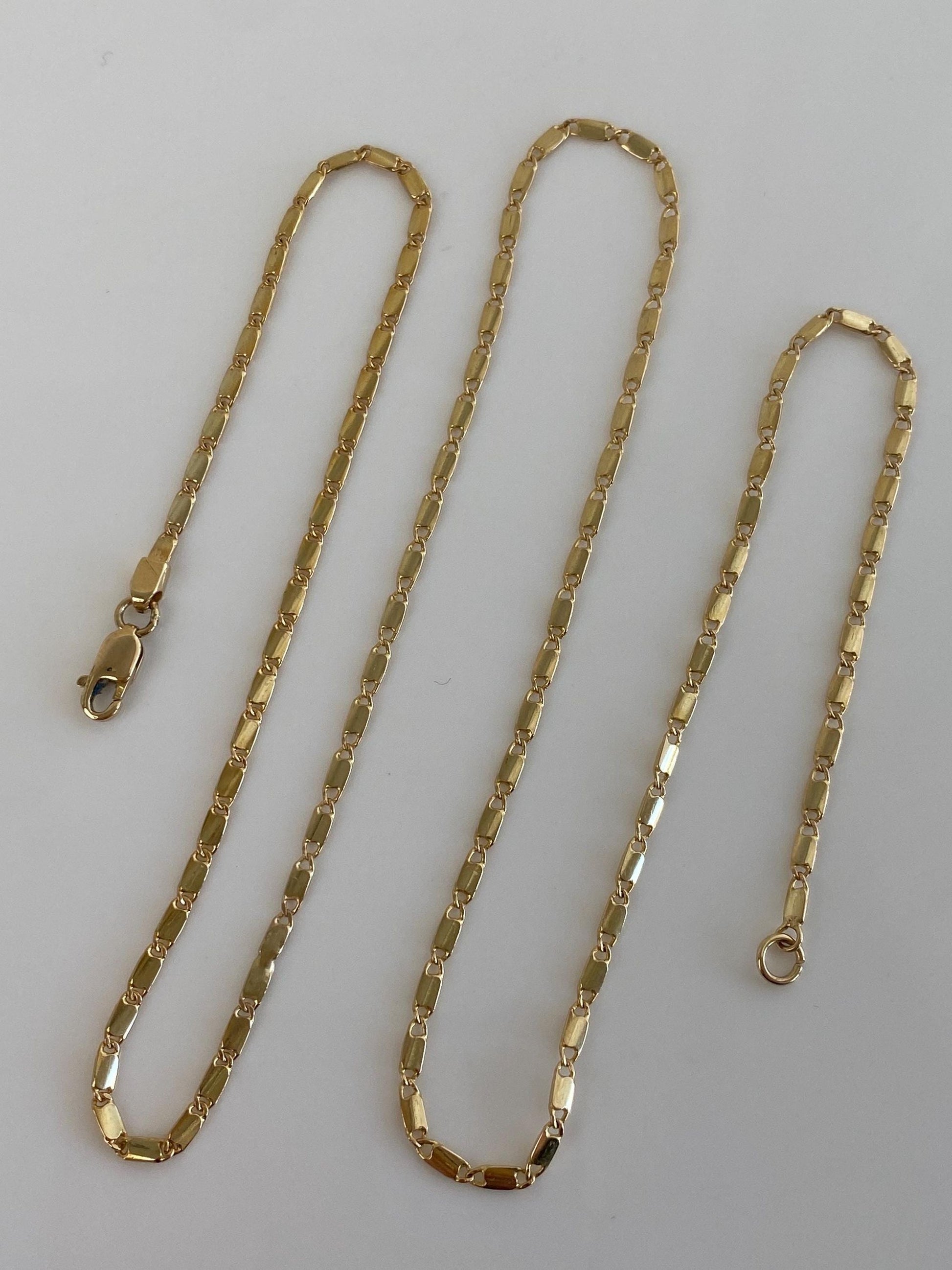 Vintage Solid 14k Yellow Gold Flat Link Chain Necklace - 19.25 inches