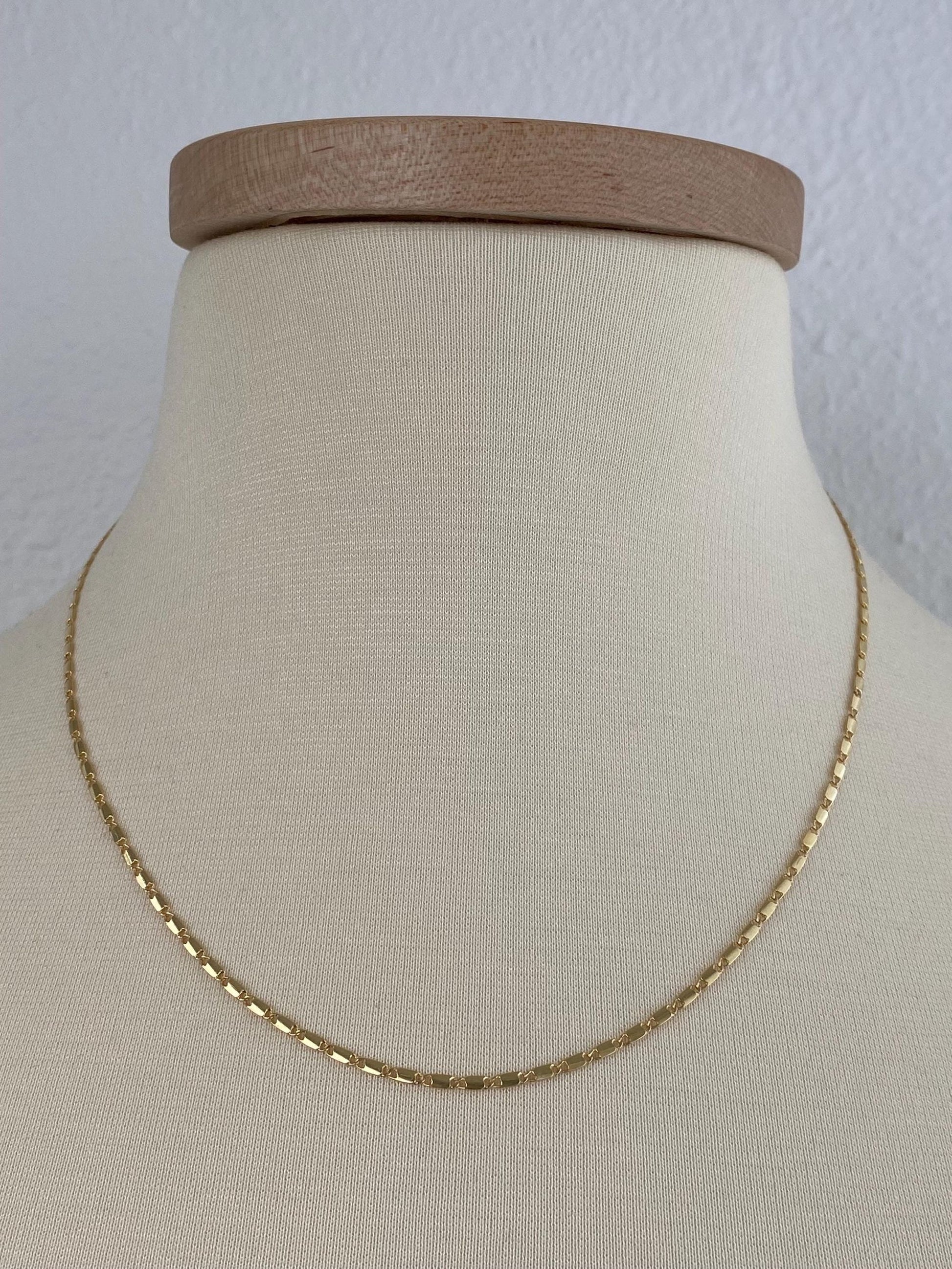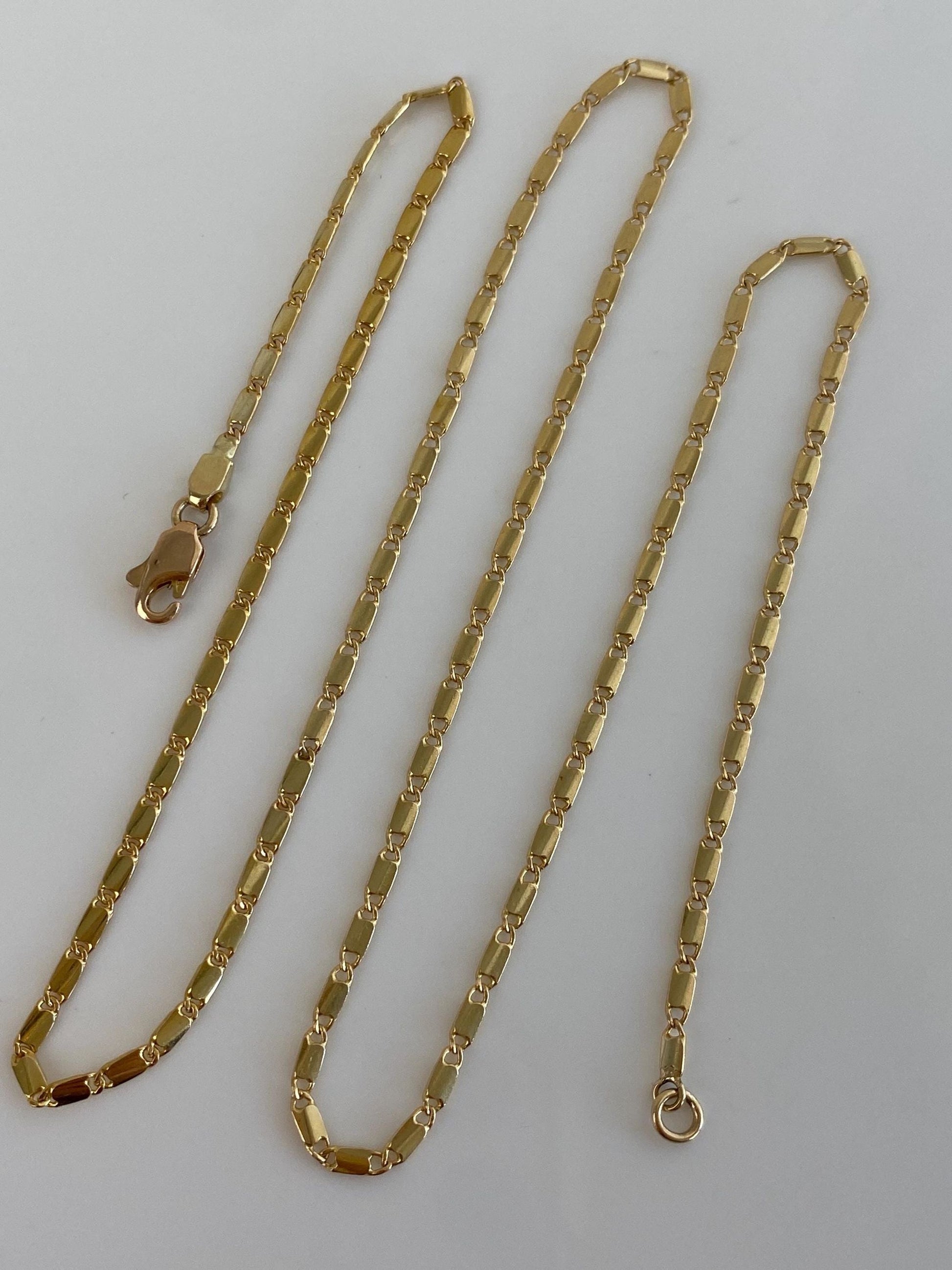 Vintage Solid 14k Yellow Gold Flat Link Chain Necklace - 19 inches