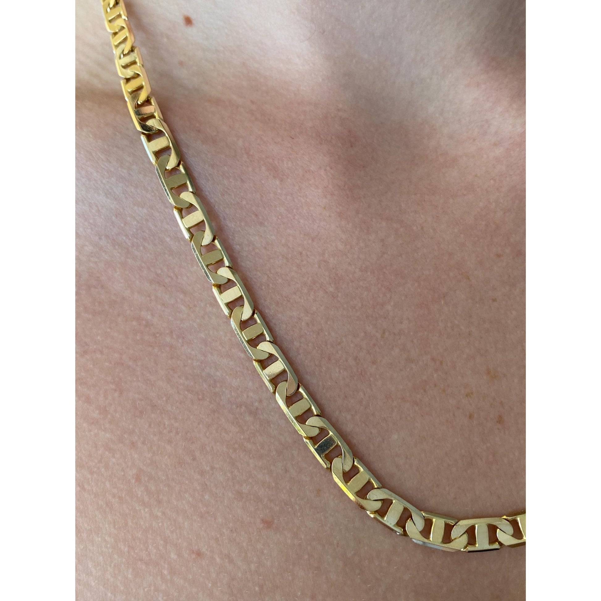 Vintage Solid 14k Yellow Gold Flat Mariner Chain Necklace - 20.75 inches