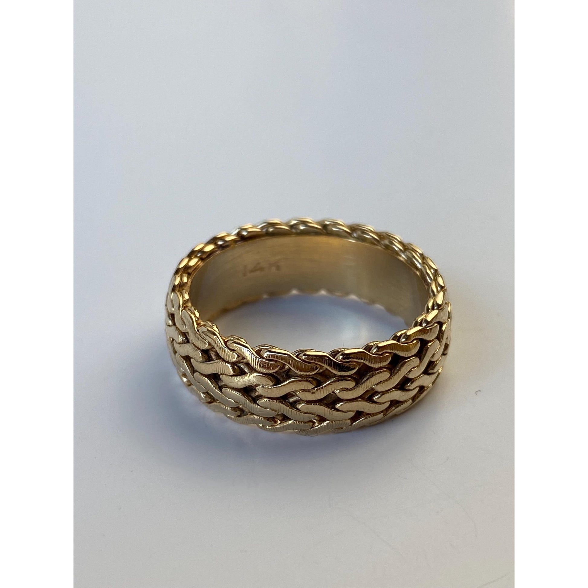 Vintage Solid 14k Yellow Gold Flat Serpentine Chain Ring Band - Size 8.75