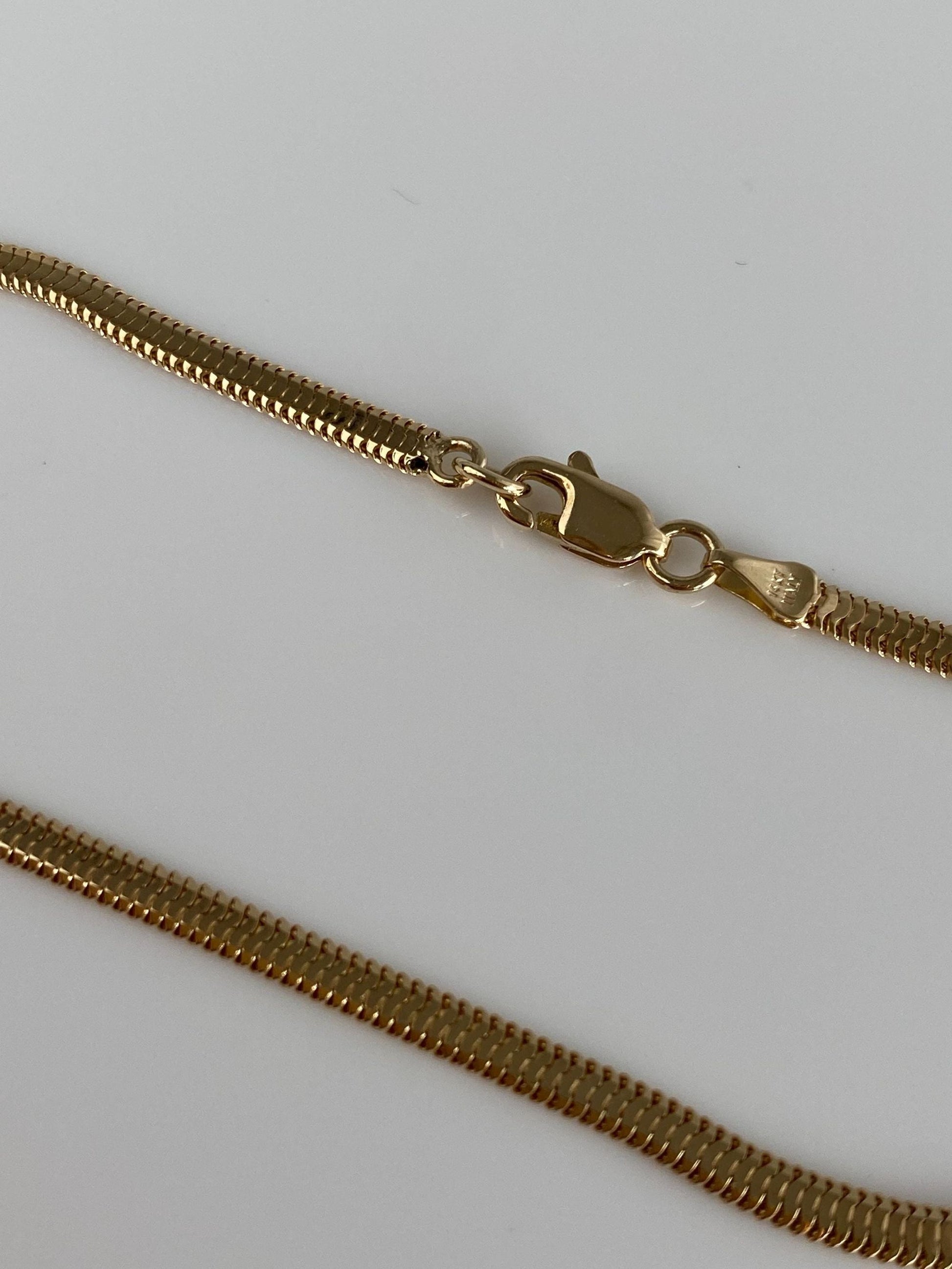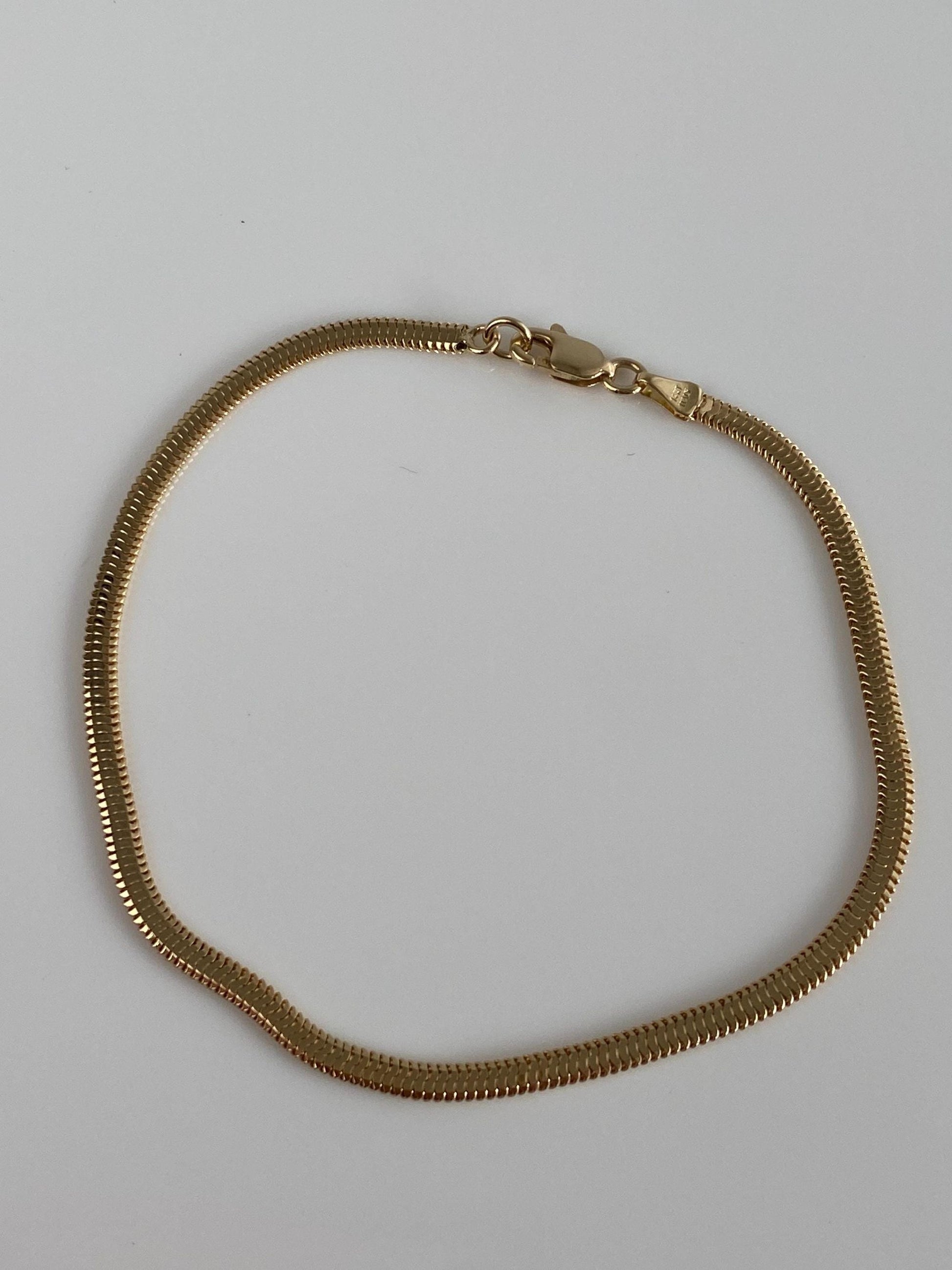 Vintage Solid 14k Yellow Gold Flat Snake Chain Bracelet - 7 inches