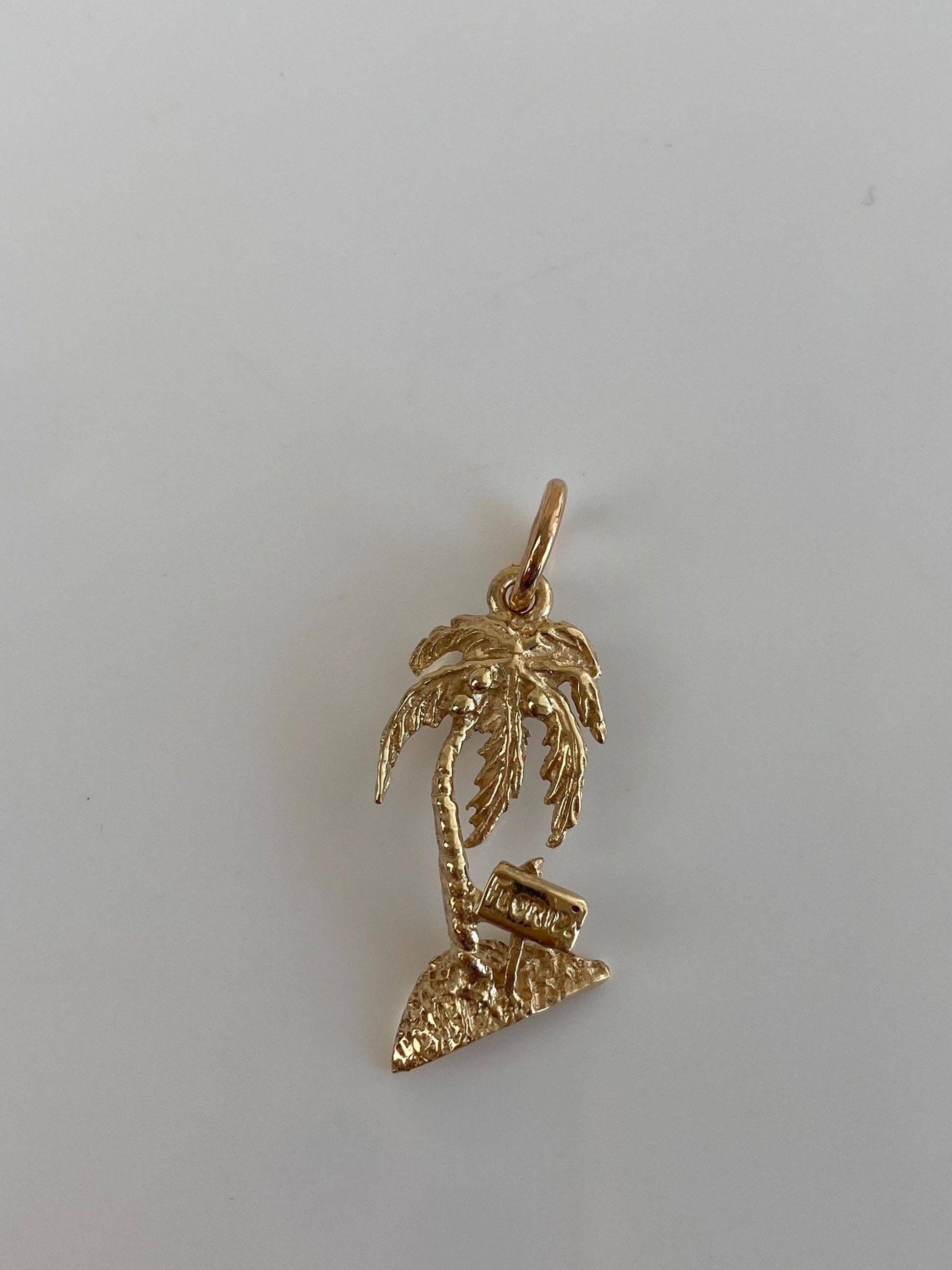 Vintage Solid 14k Yellow Gold Florida Palm Tree Charm