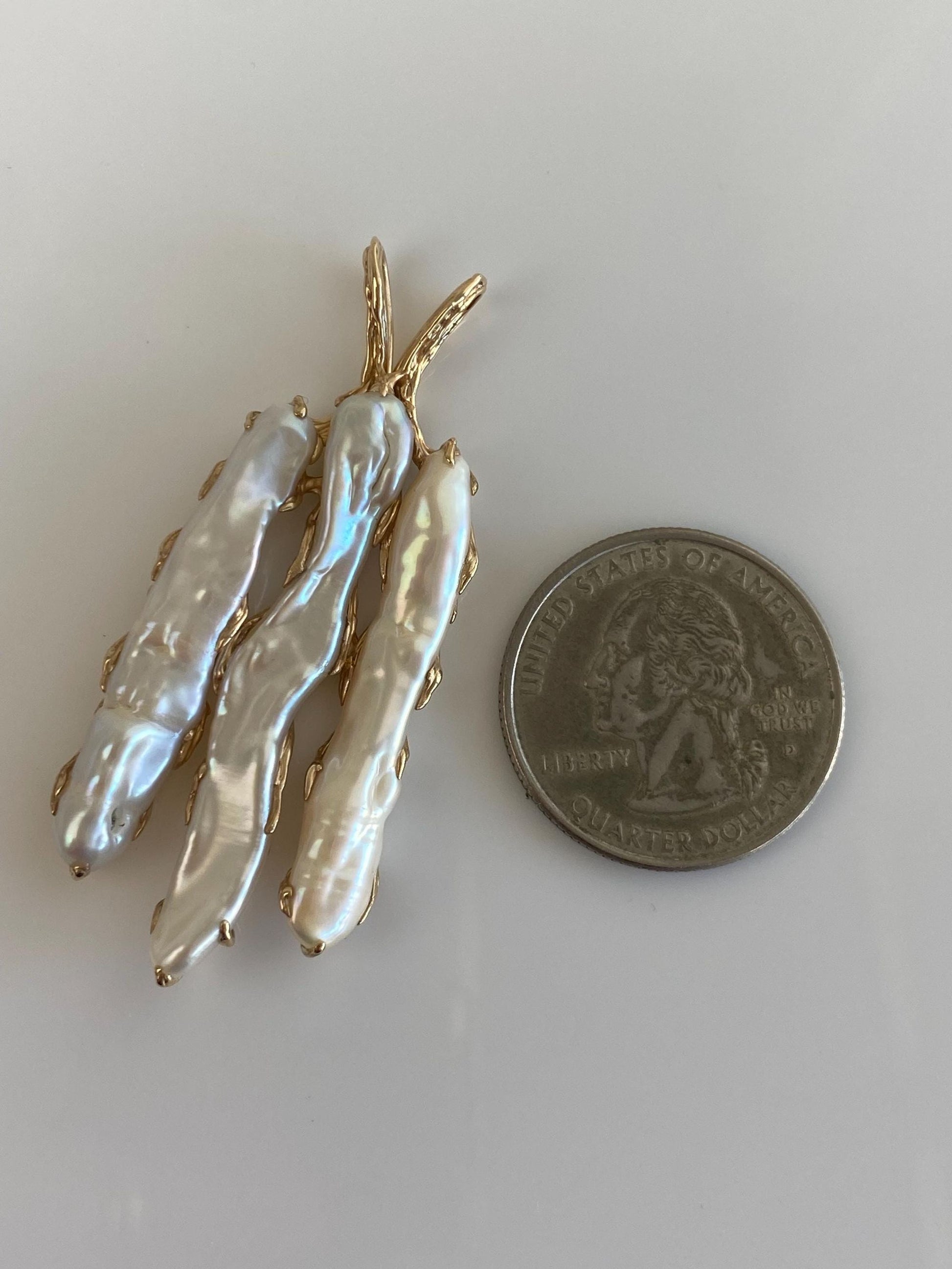 Vintage Solid 14k Yellow Gold Freshwater Stick Pearl Charm