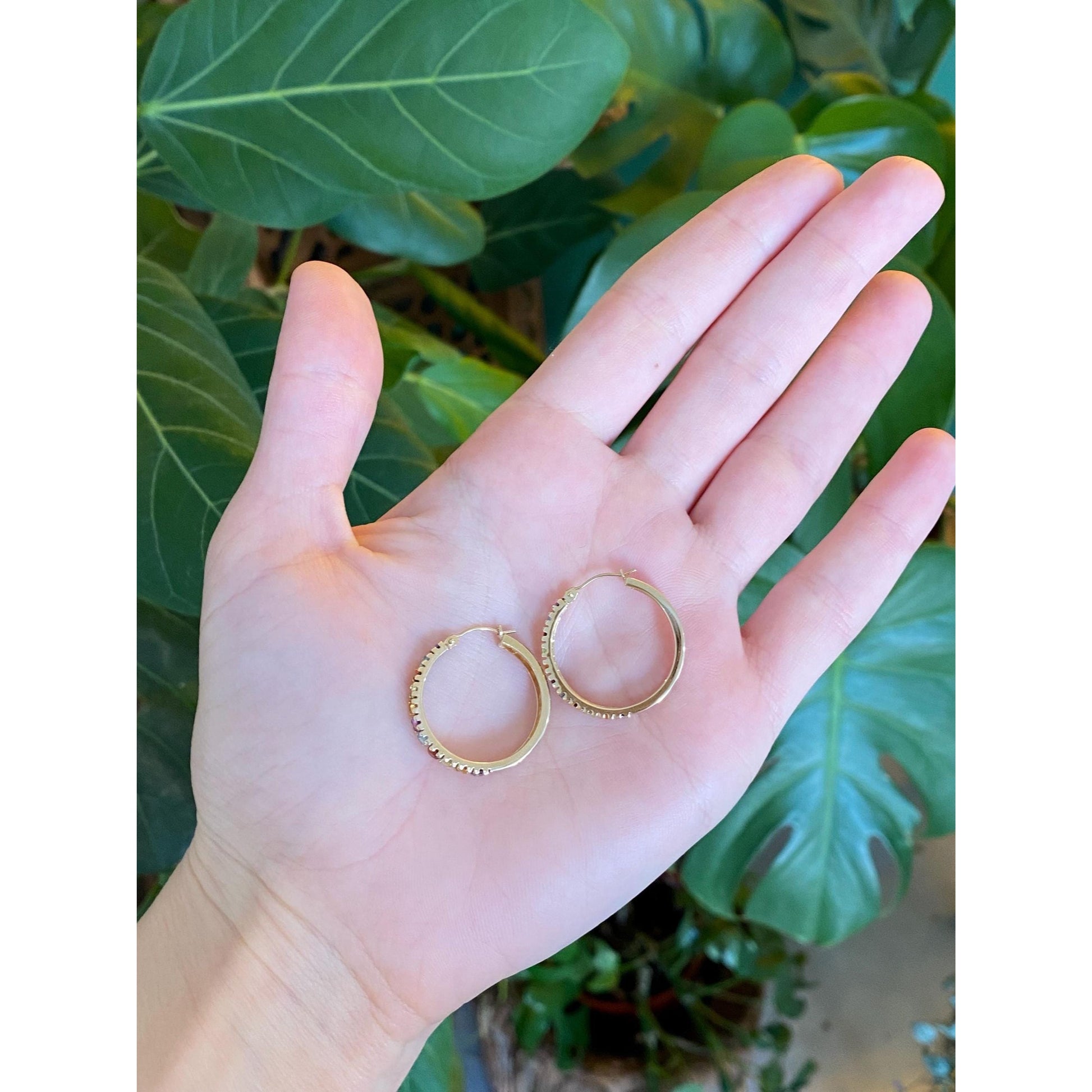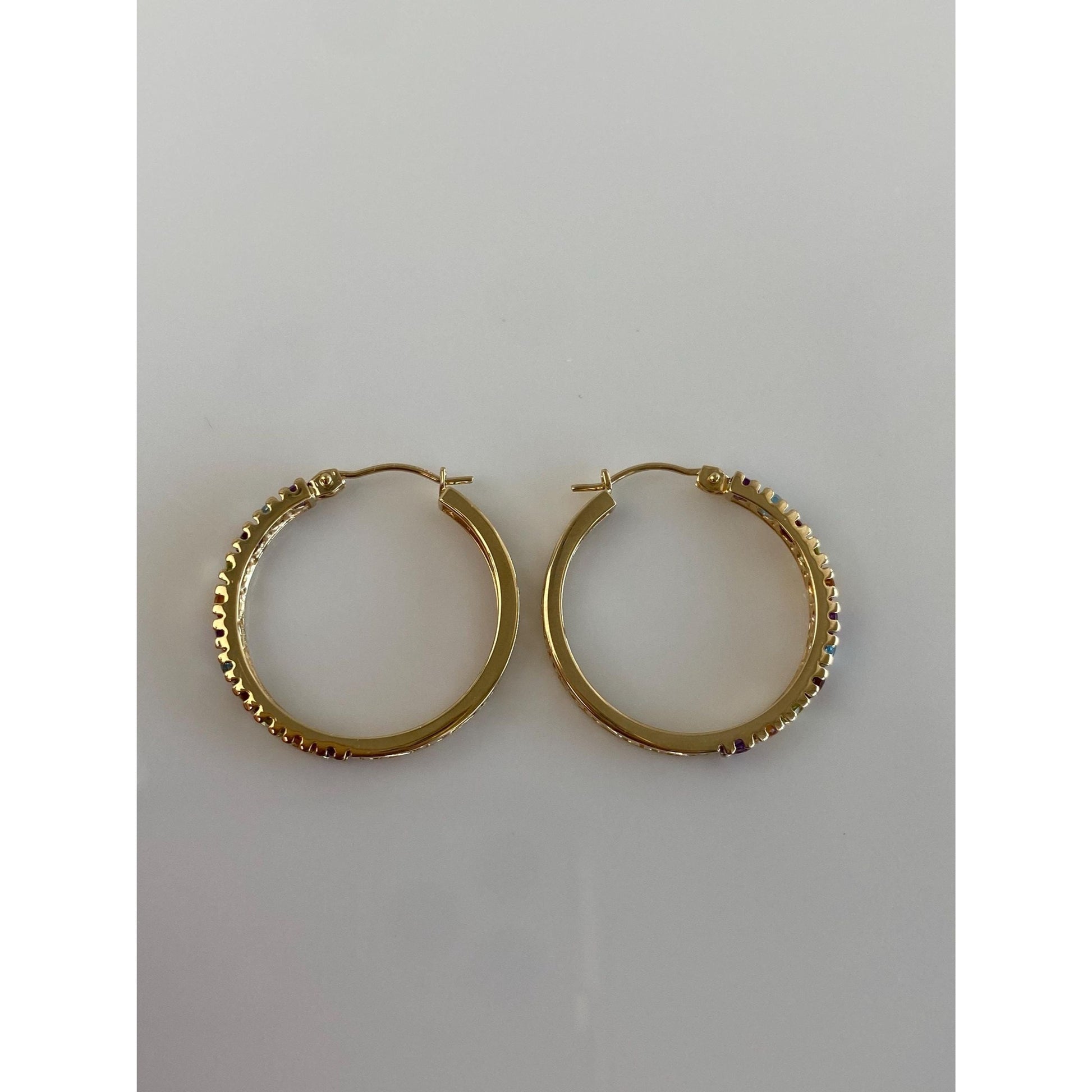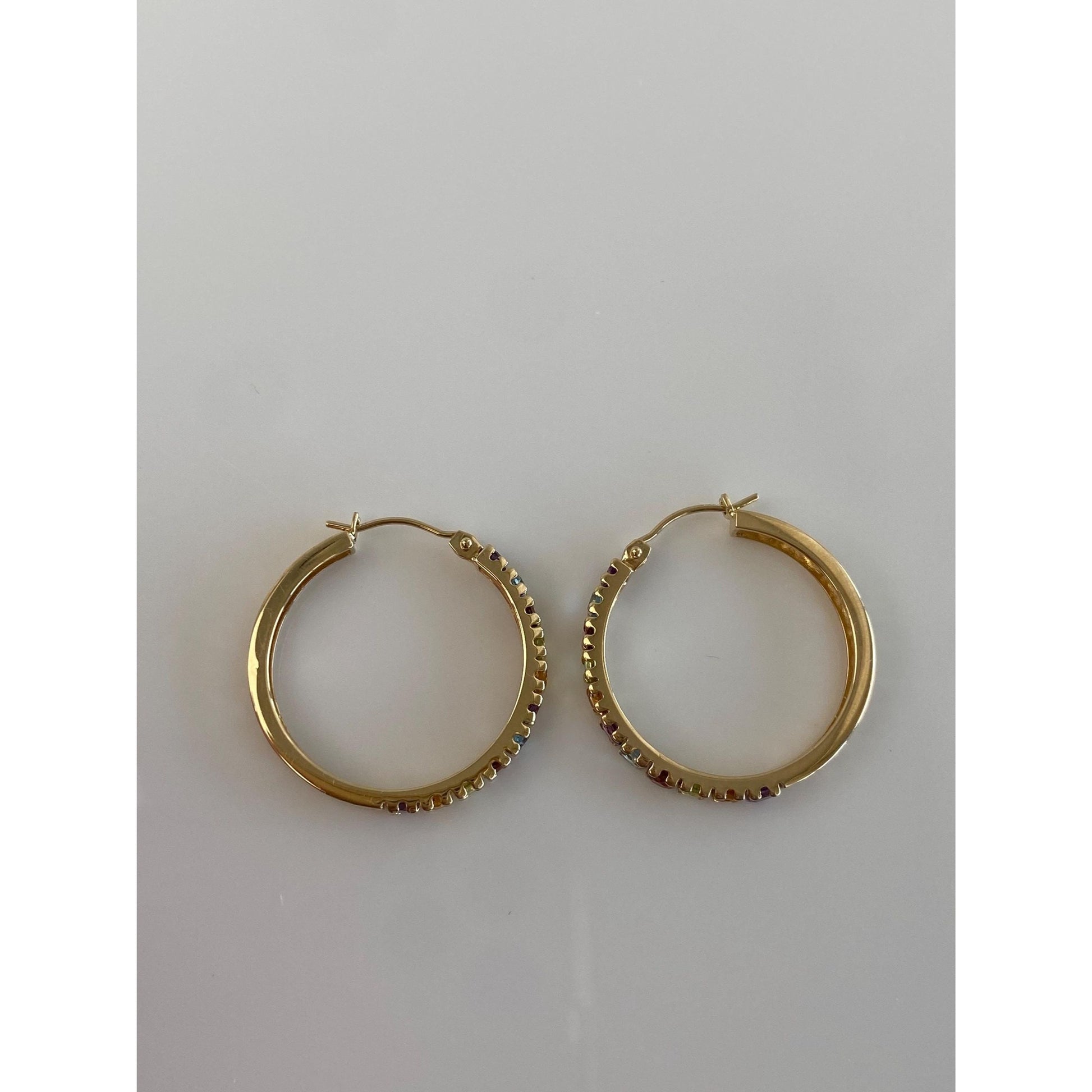 Vintage Solid 14k Yellow Gold Garnet Aquamarine Citrine Peridot Amethyst Hoop Earrings