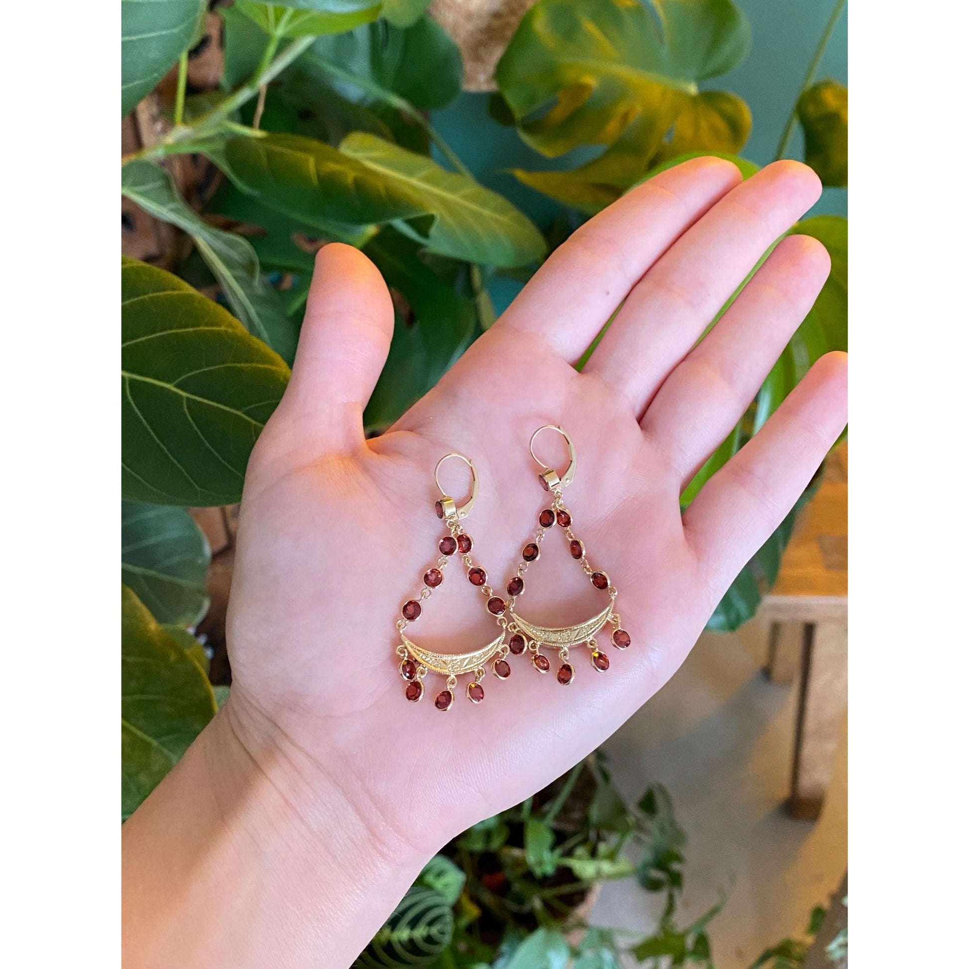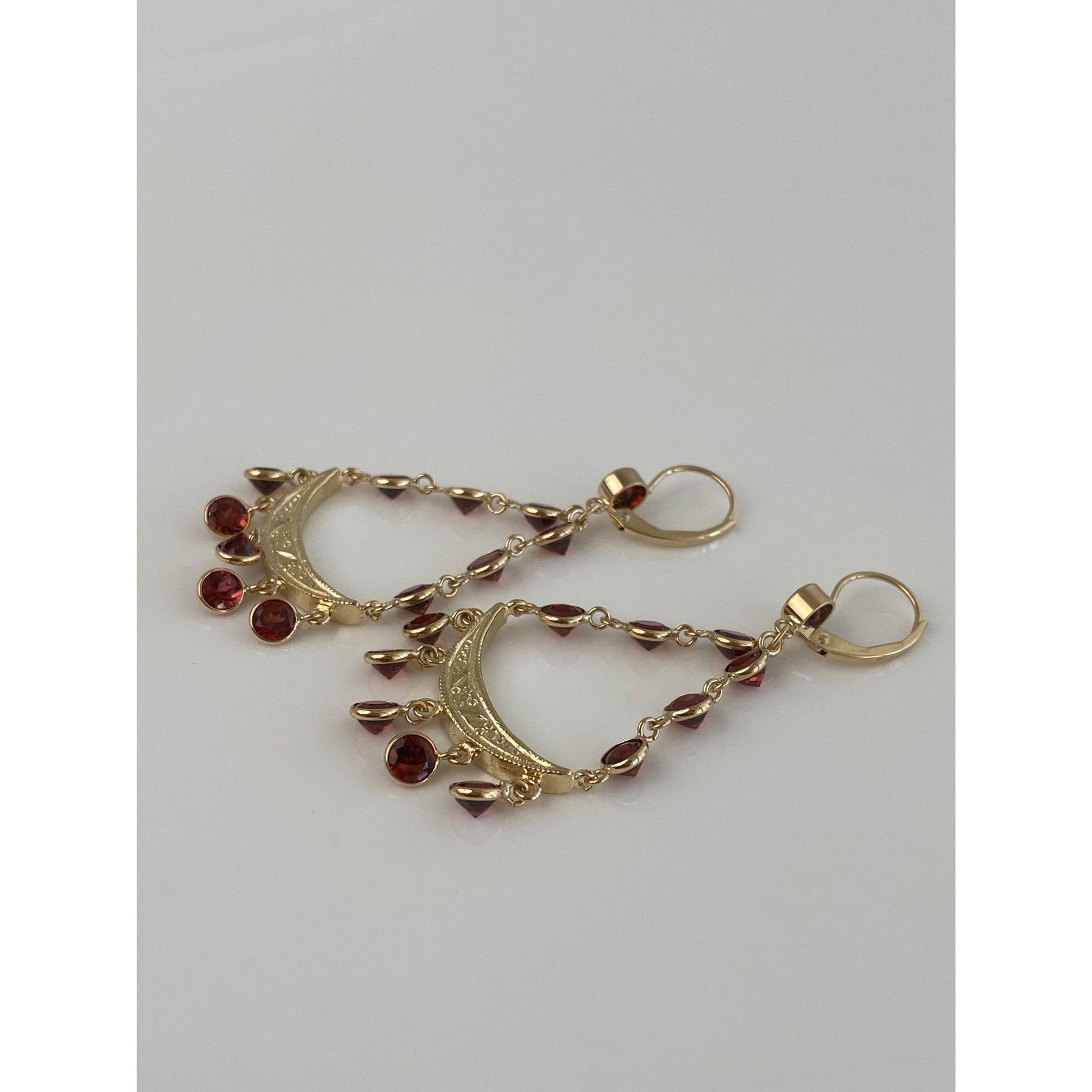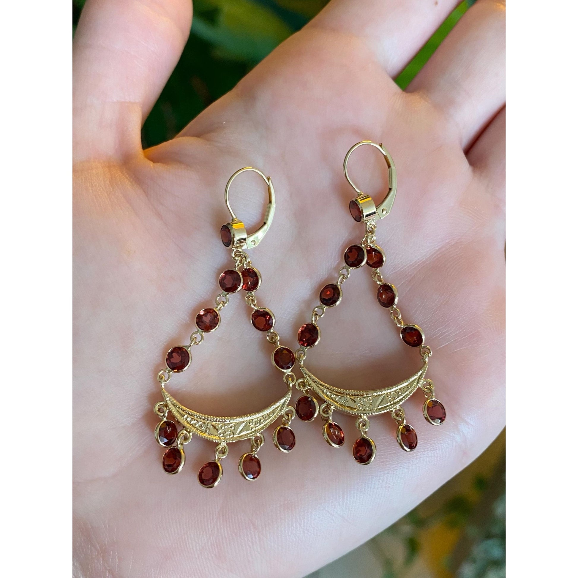 Vintage Solid 14k Yellow Gold Garnet Chandelier Dangle Earrings