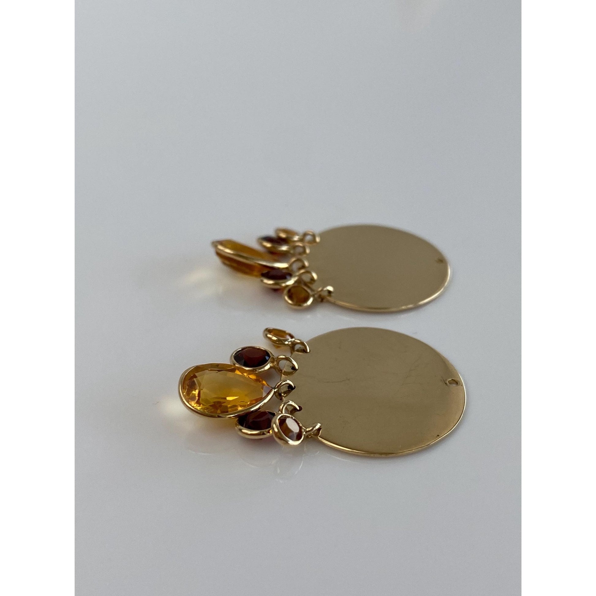 Vintage Solid 14k Yellow Gold Garnet Citrine Dangle Earring Jackets