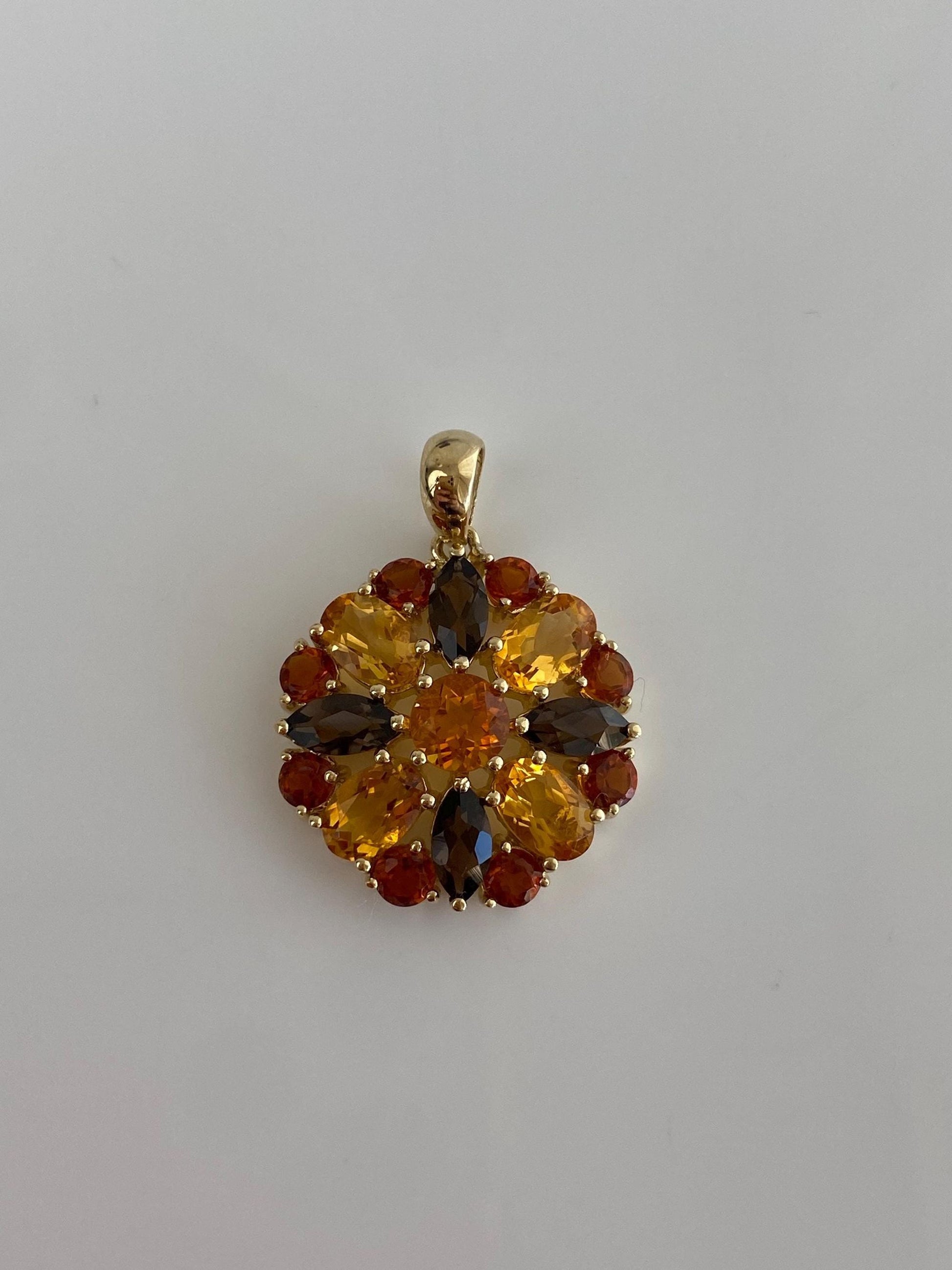 Vintage Solid 14k Yellow Gold Garnet Citrine Smokey Quartz Cluster Charm
