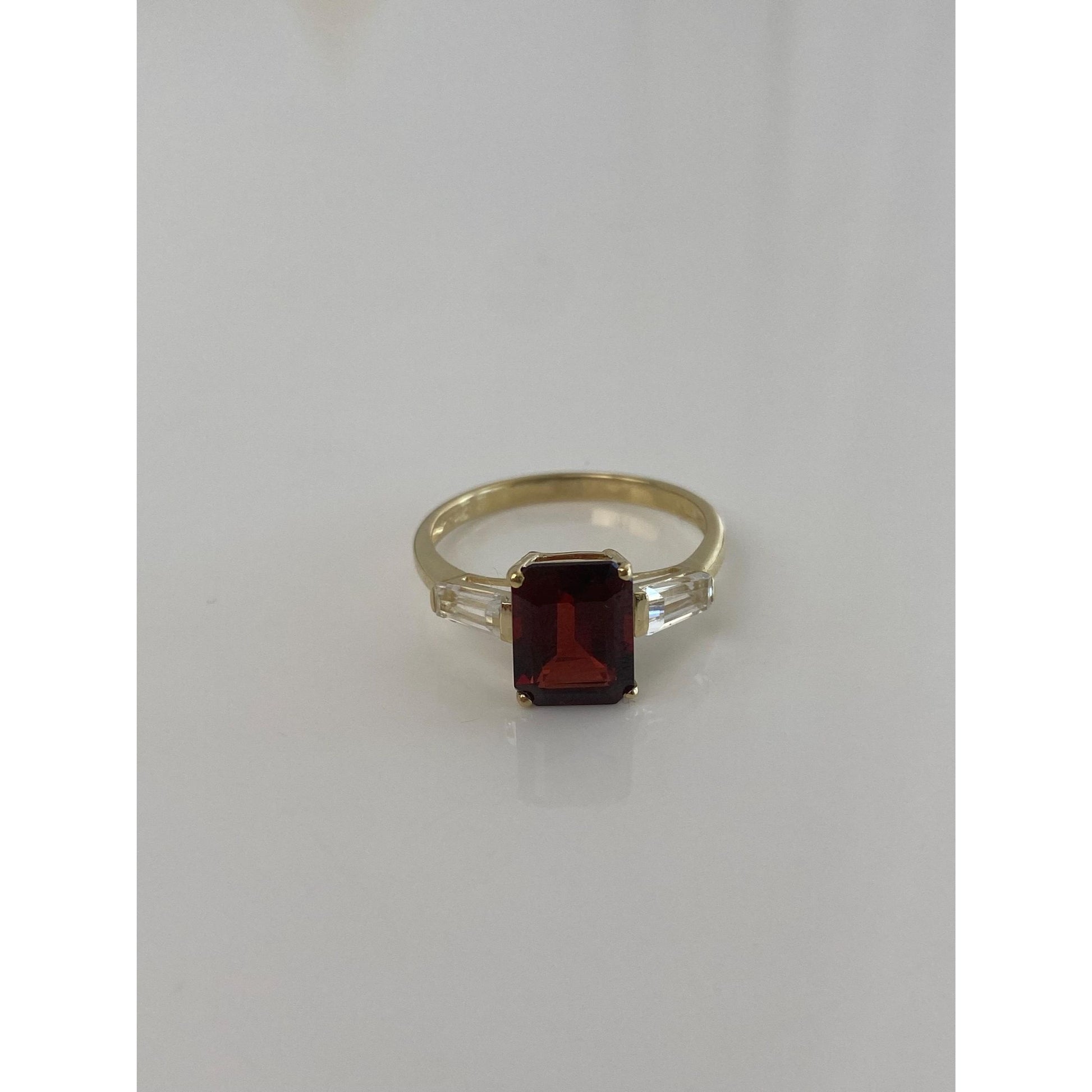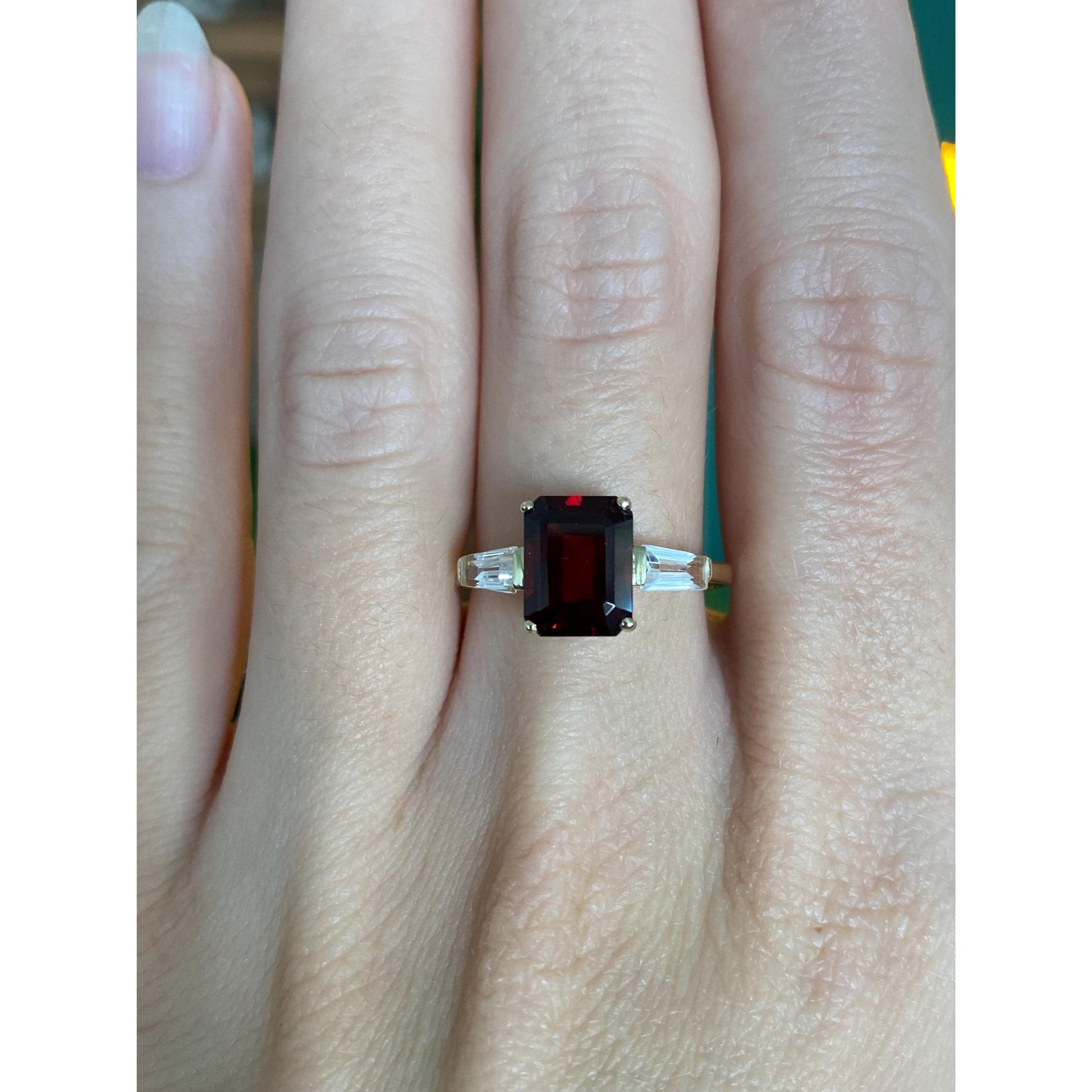 Vintage Solid 14k Yellow Gold Garnet Clear Topaz Ring - Size 8