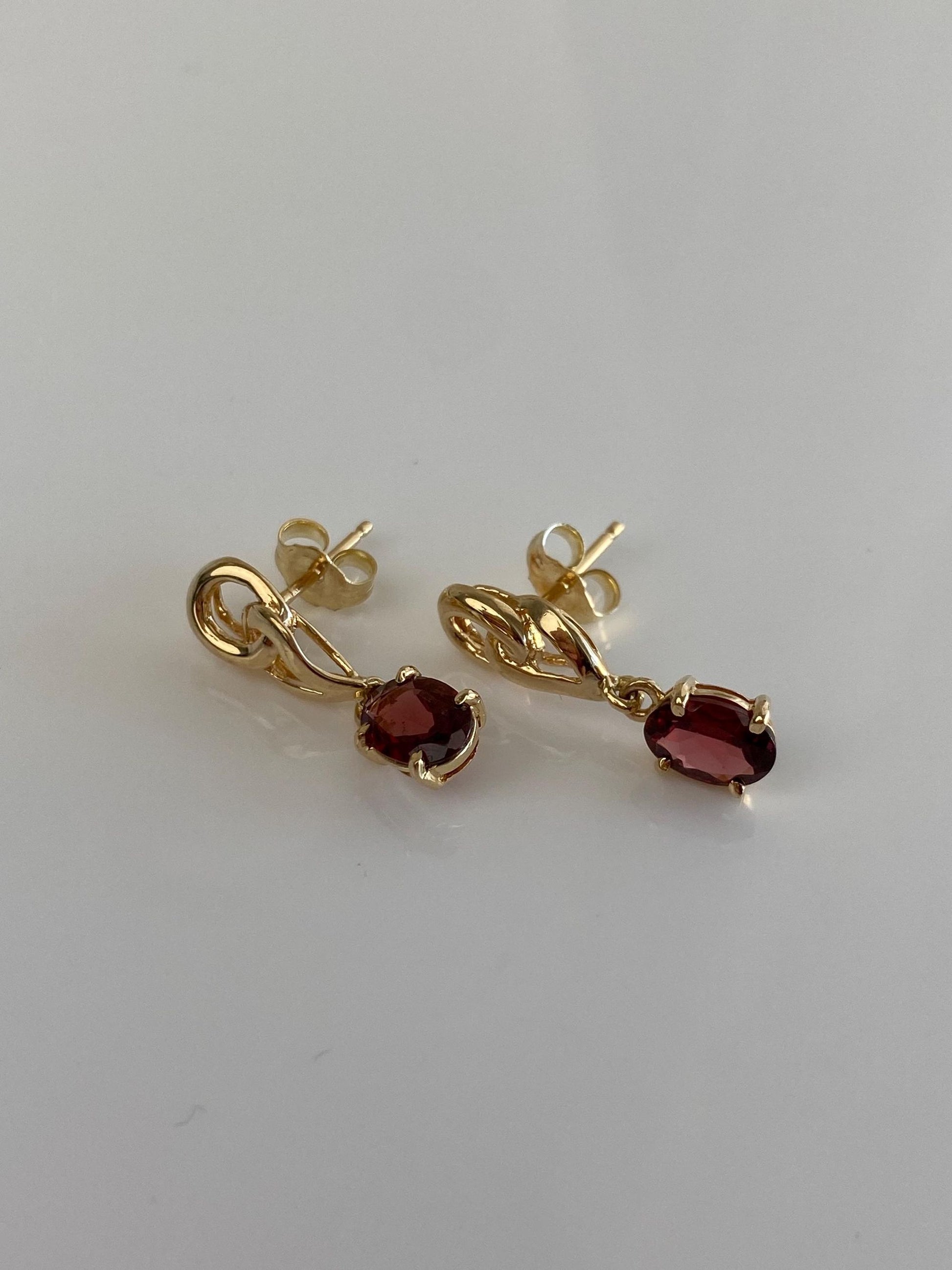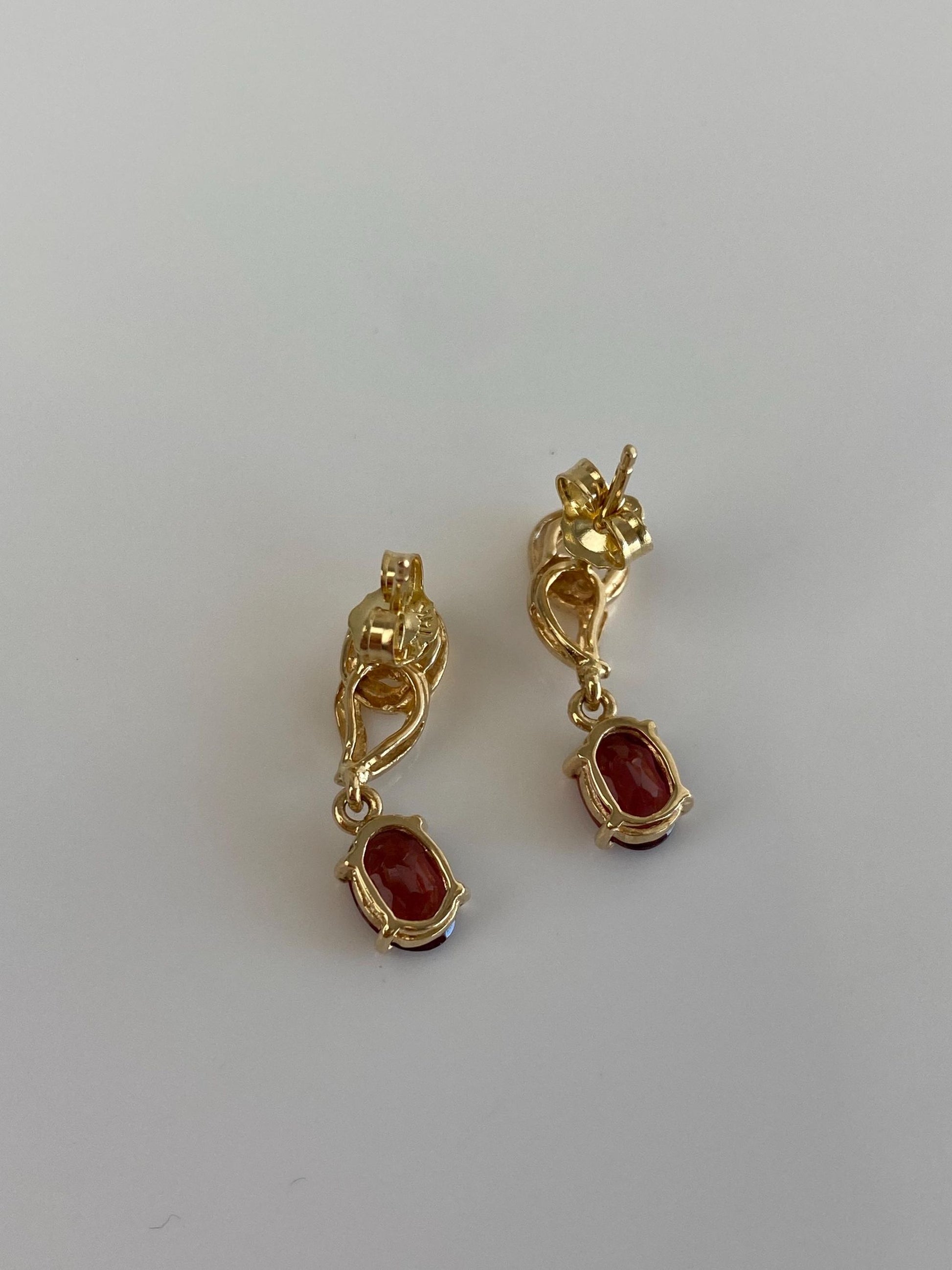 Vintage Solid 14k Yellow Gold Garnet Dangle Stud Earrings