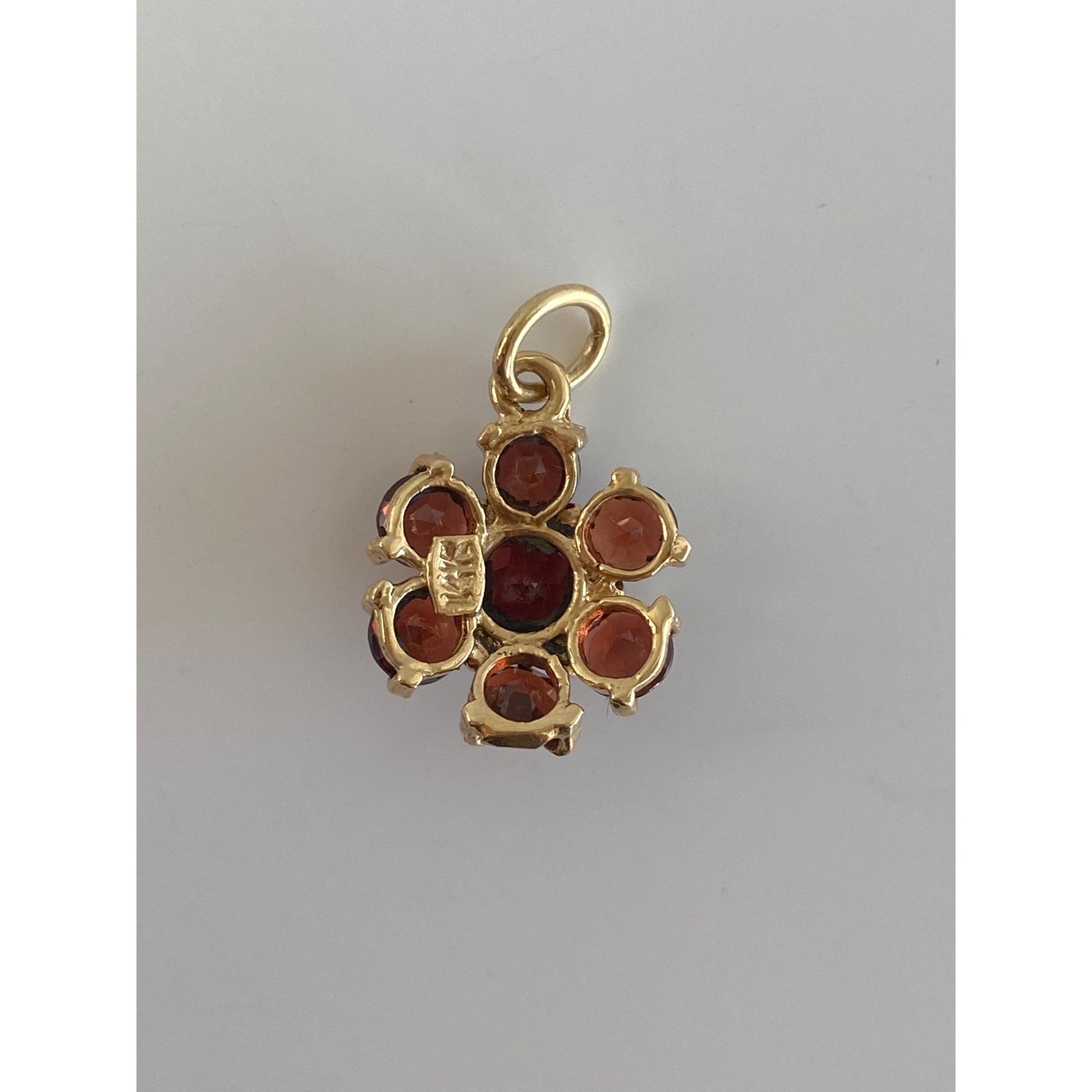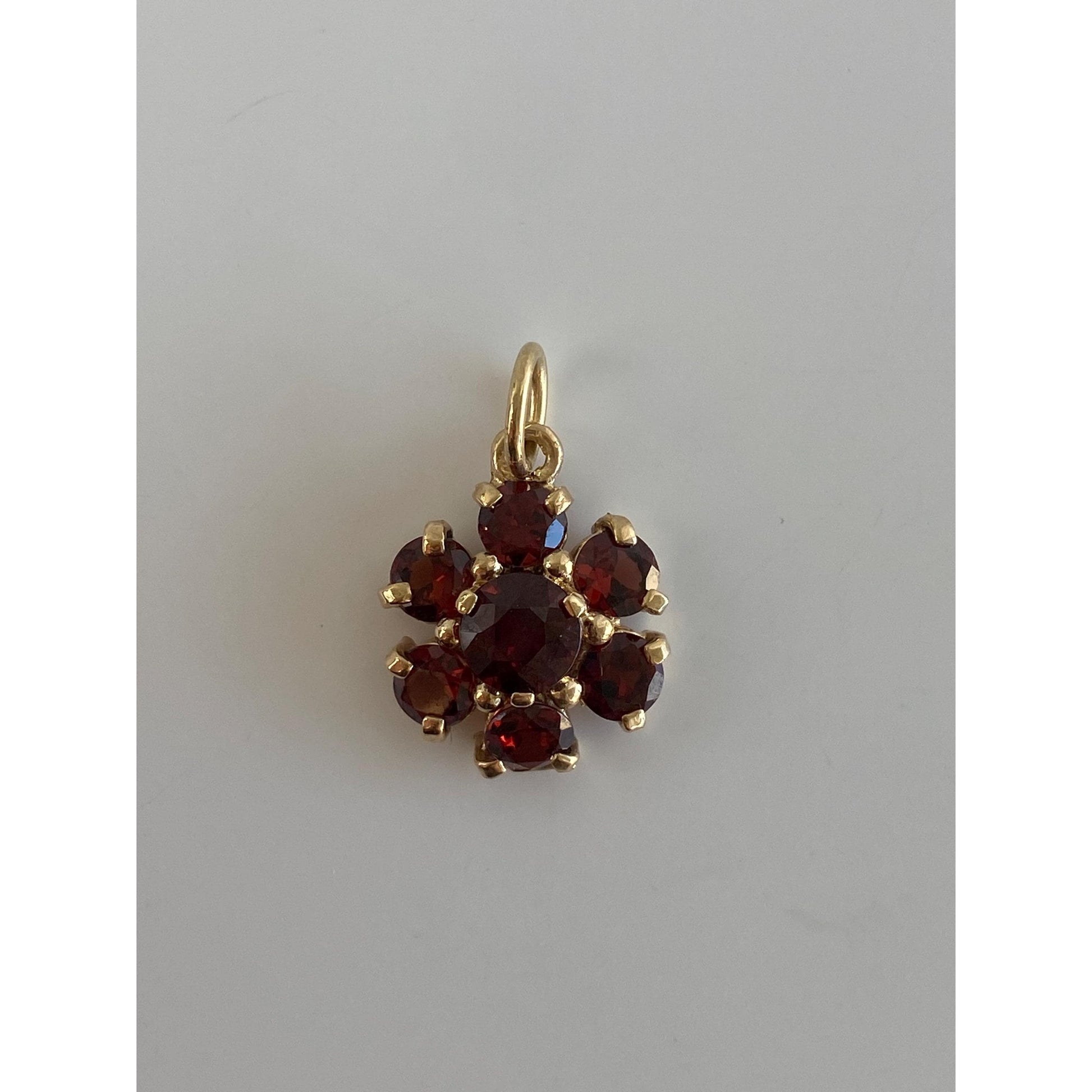Vintage Solid 14k Yellow Gold Garnet Flower Charm