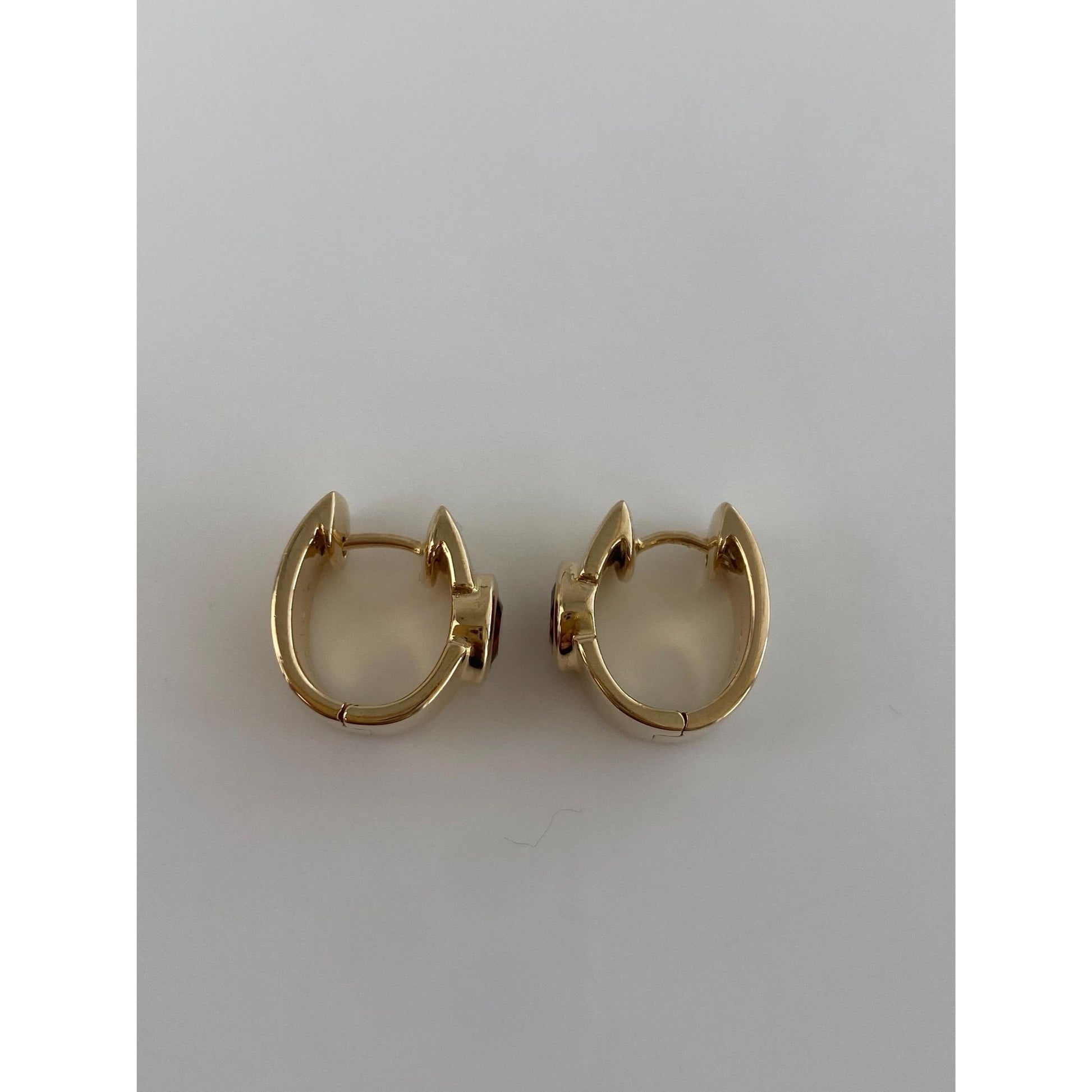 Vintage Solid 14k Yellow Gold Garnet Hoop Earrings