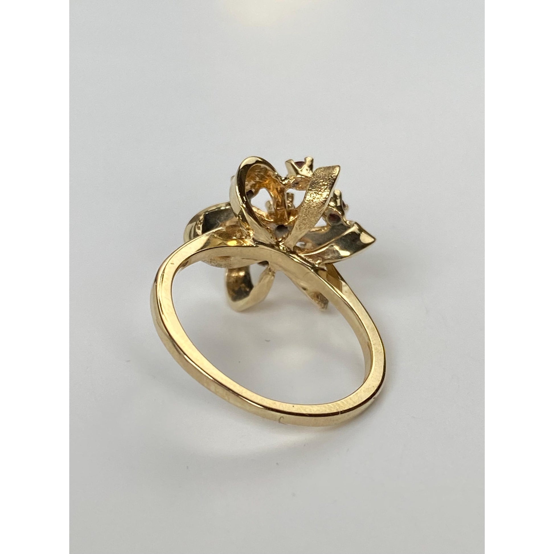 Vintage Solid 14k Yellow Gold Garnet Knot Ring - Size 6.25