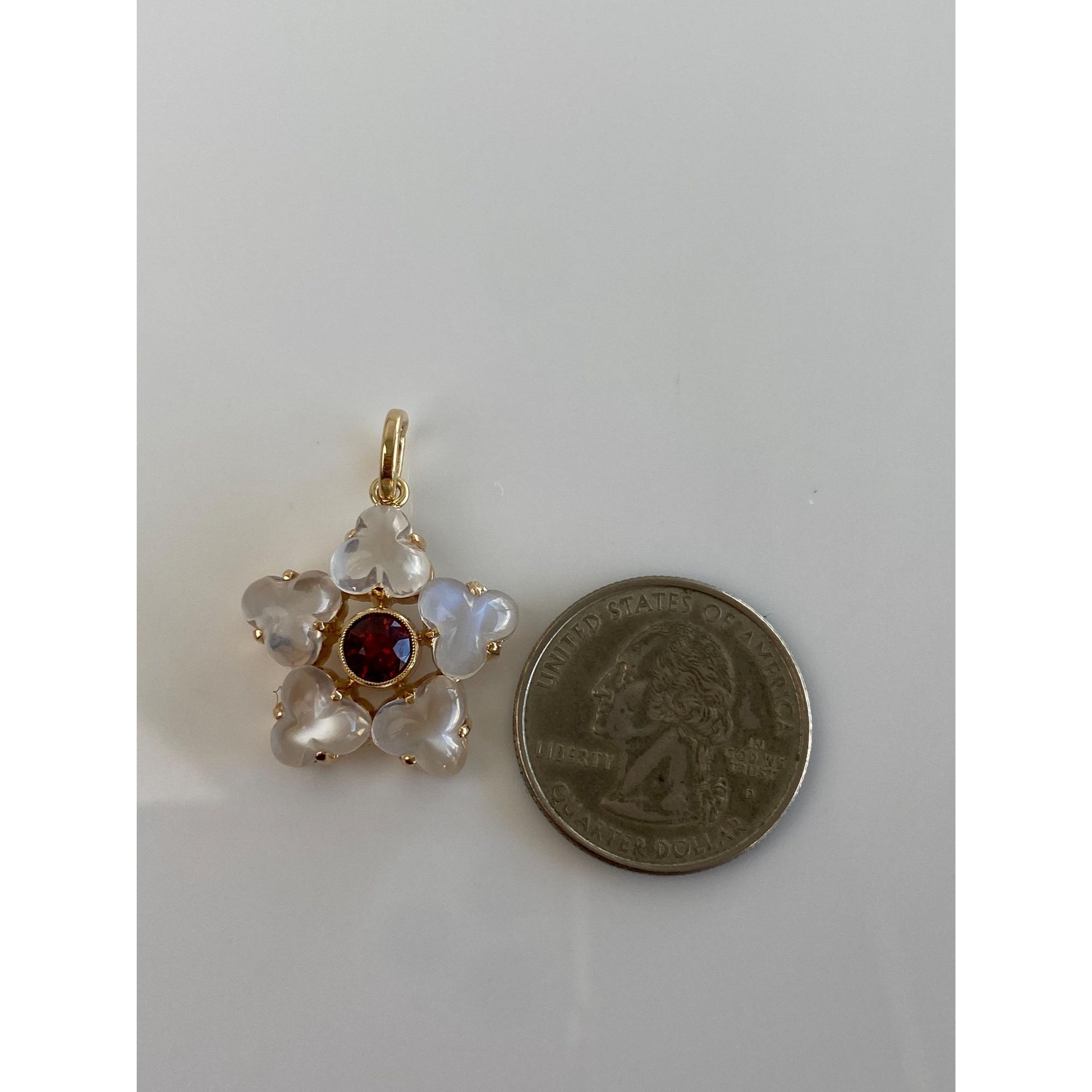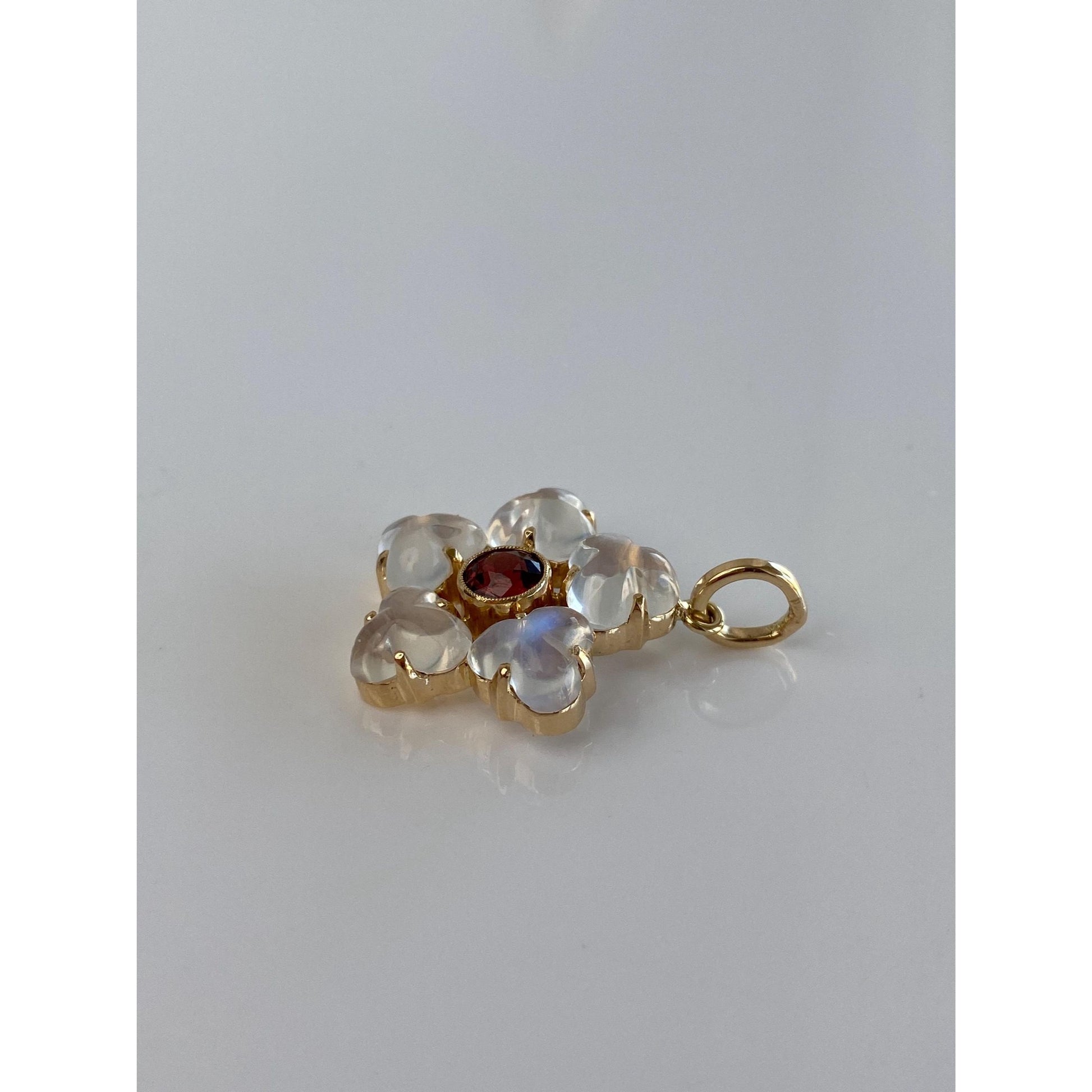 Vintage Solid 14k Yellow Gold Garnet Moonstone Flower Charm