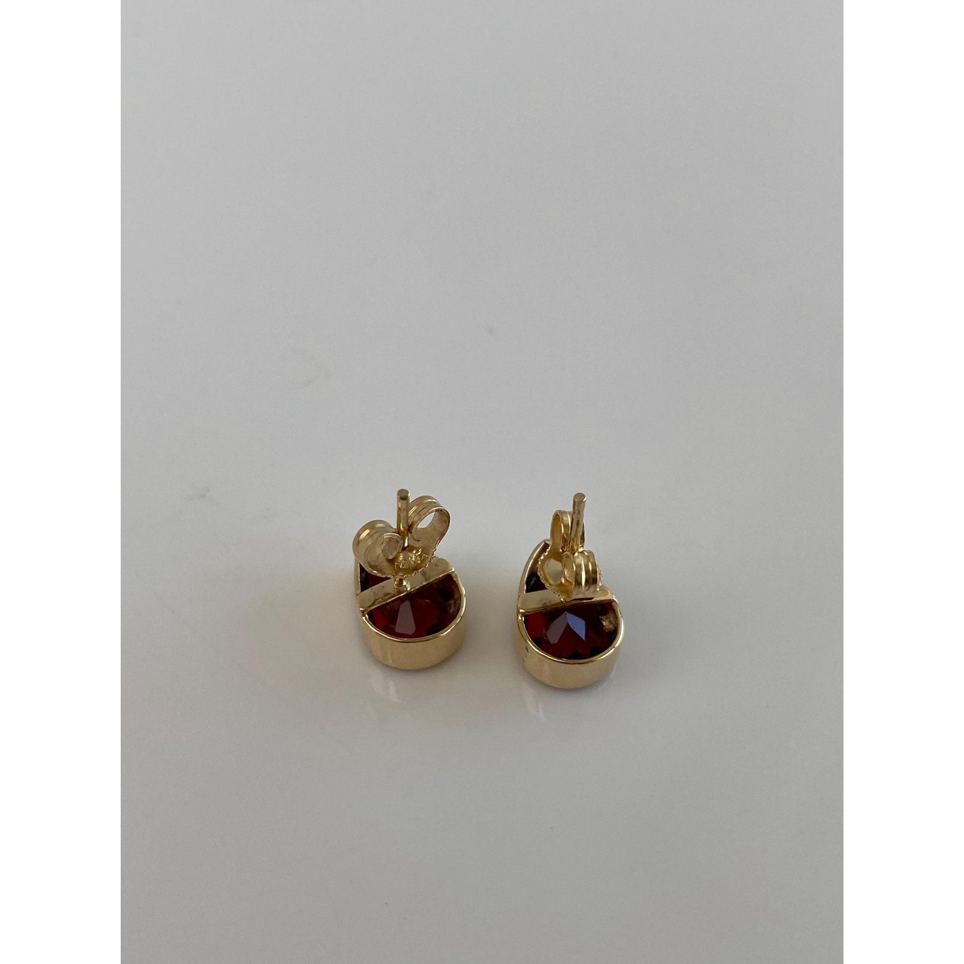 Vintage Solid 14k Yellow Gold Garnet Teardrop Stud Earrings