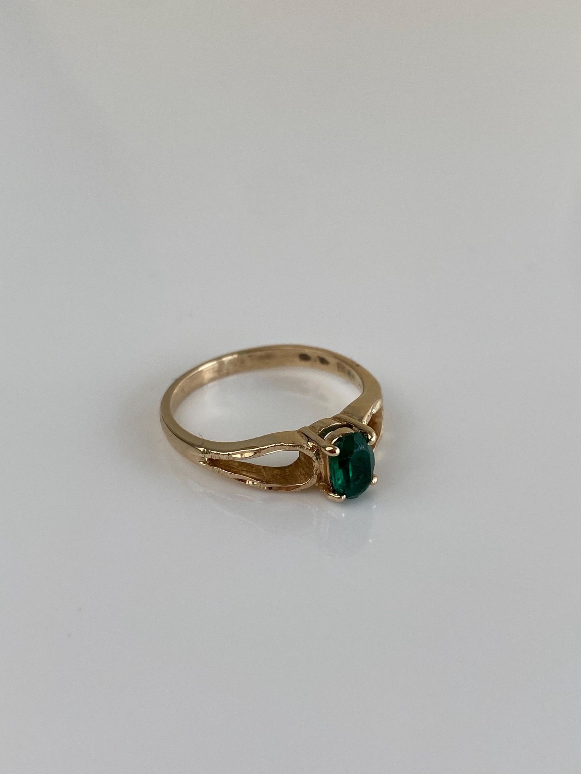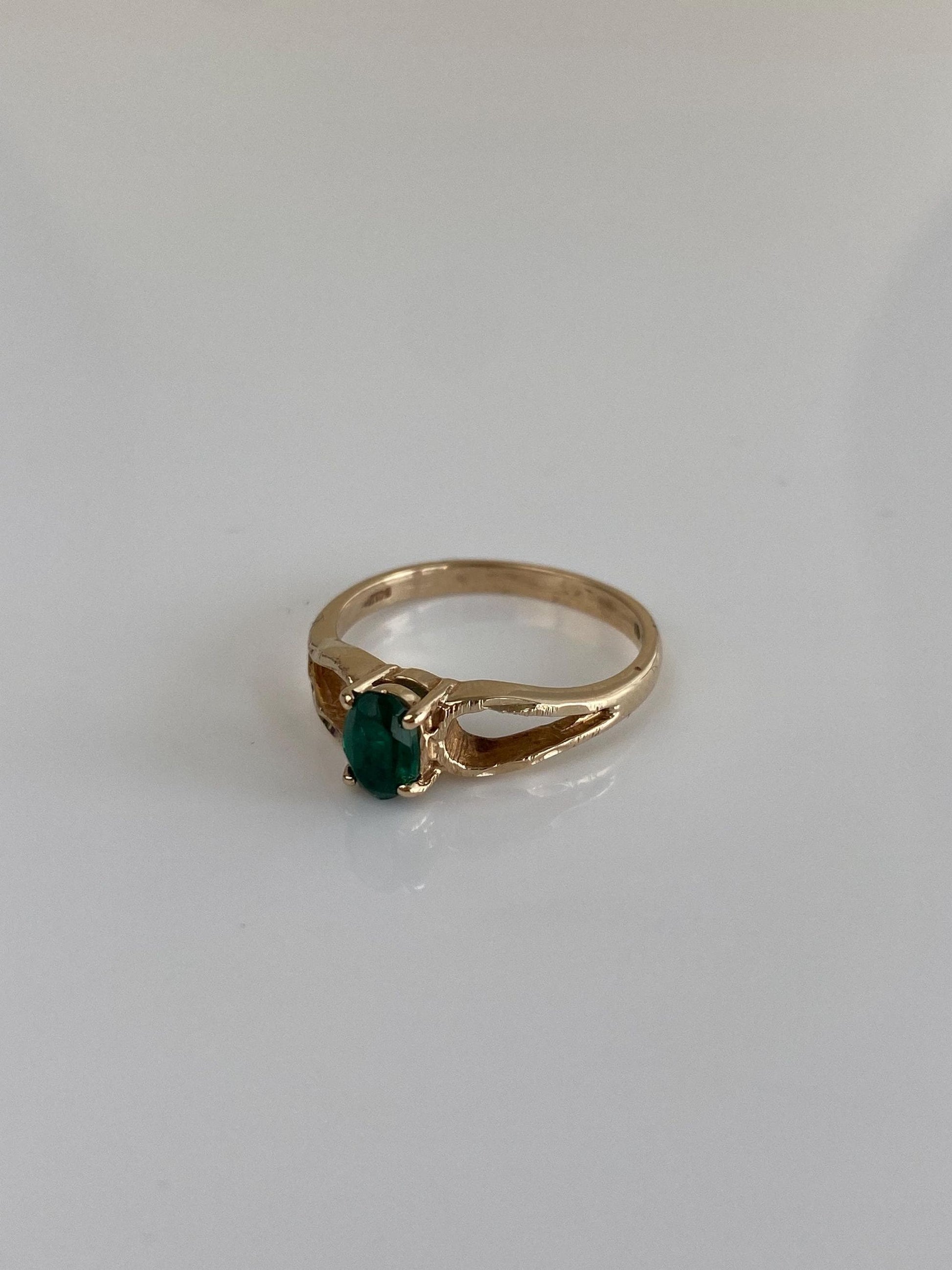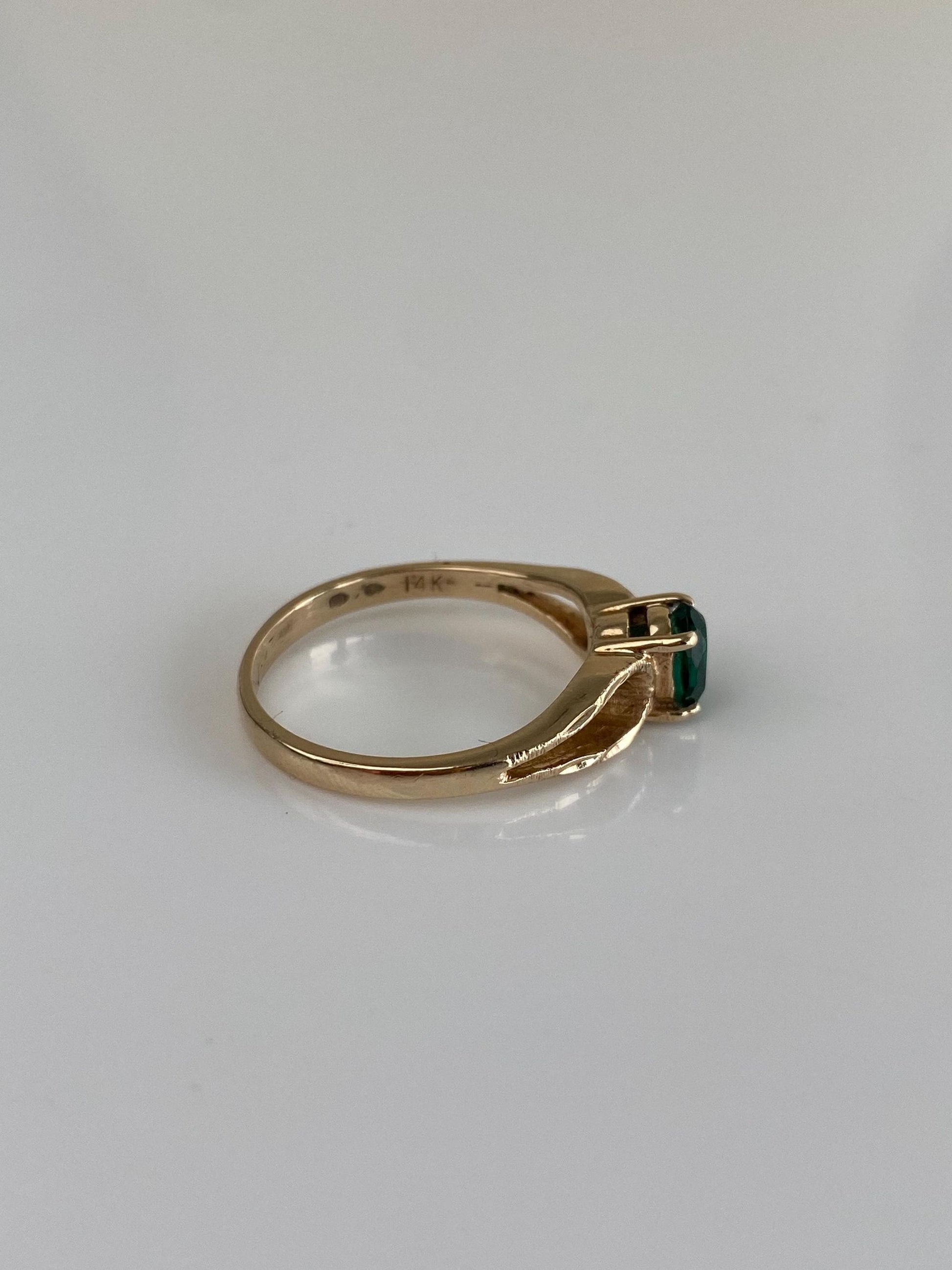 Vintage Solid 14k Yellow Gold Green Cubic Zirconia Ring - Size 6