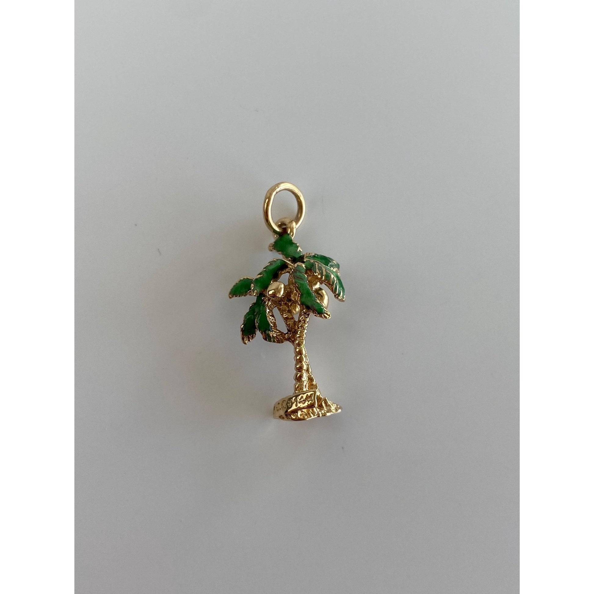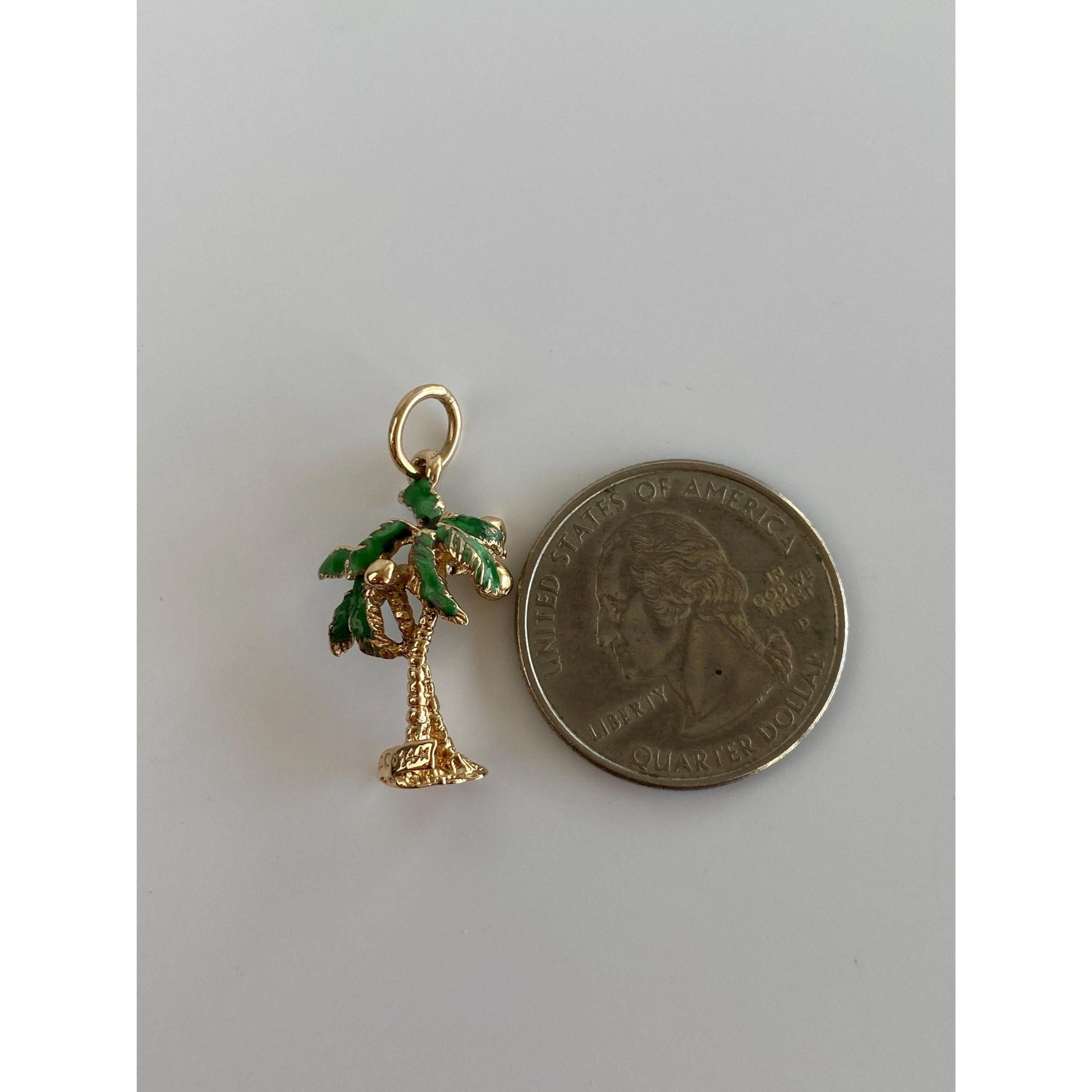 Vintage Solid 14k Yellow Gold Green Enamel Palm Tree Charm