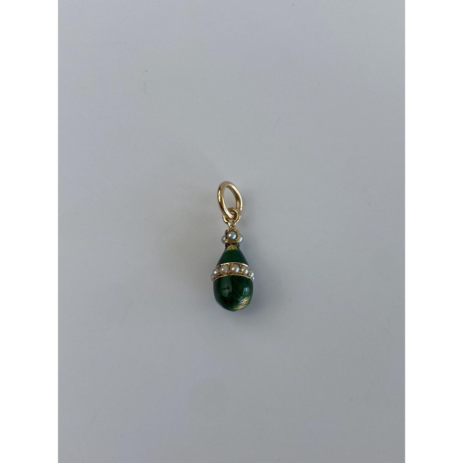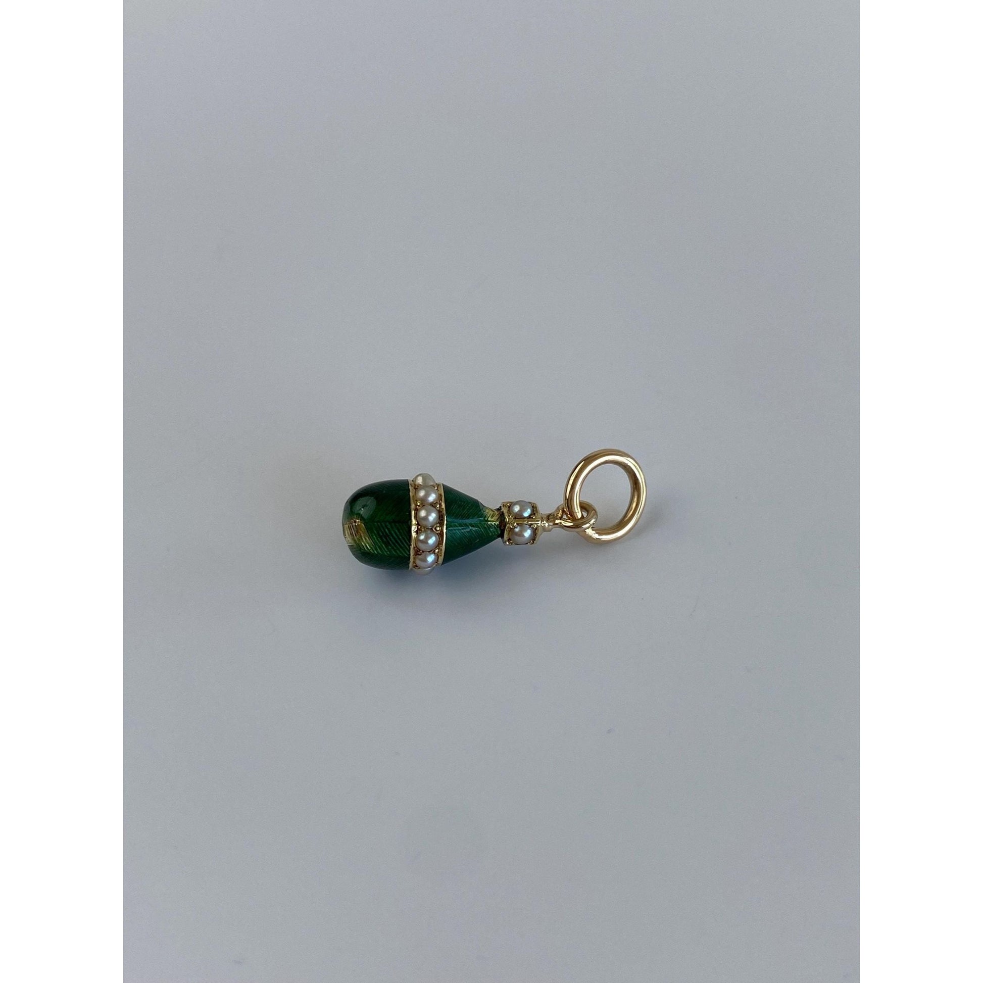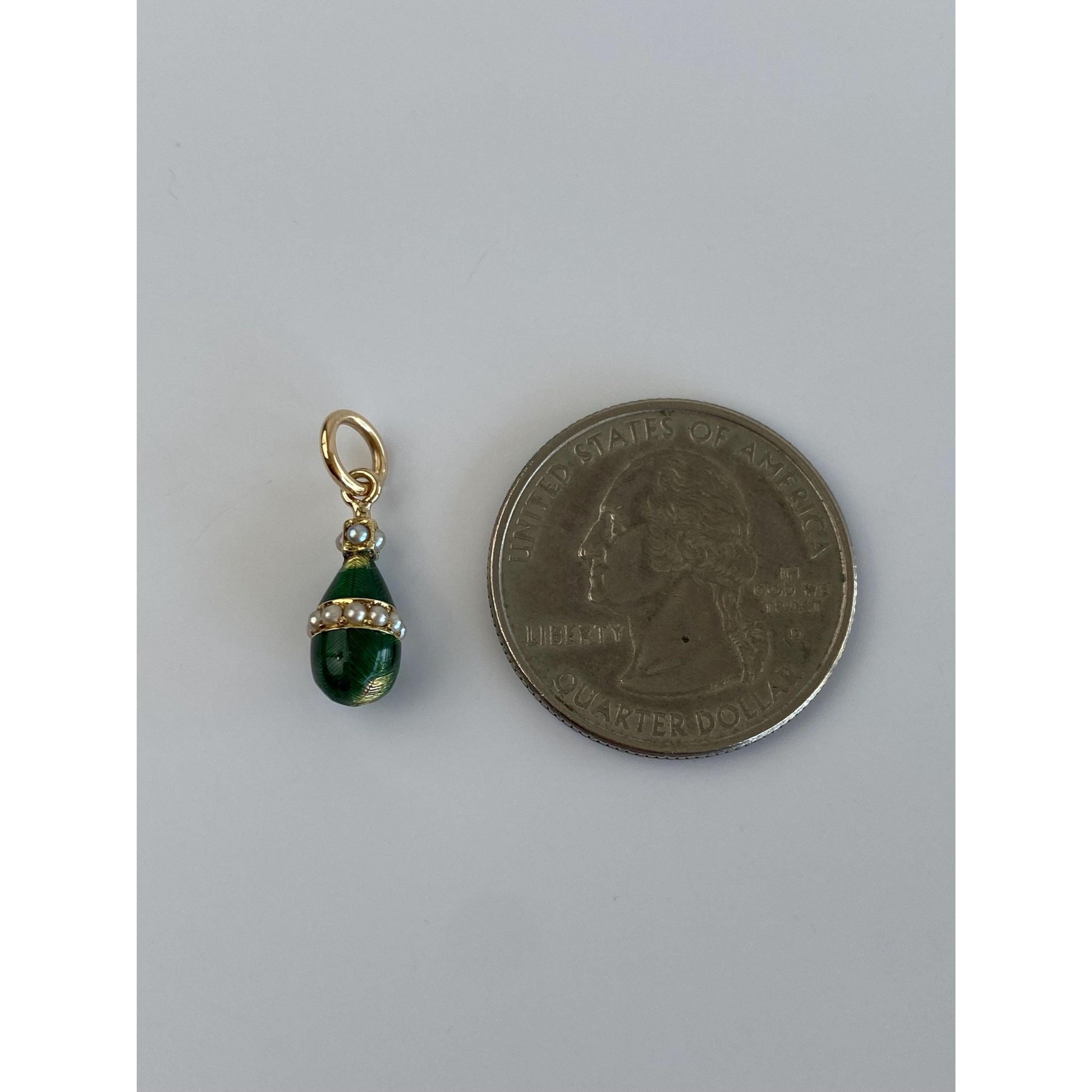 Vintage Solid 14k Yellow Gold Green Enamel Seed Pearl Drop Stick Pin Conversion Charm