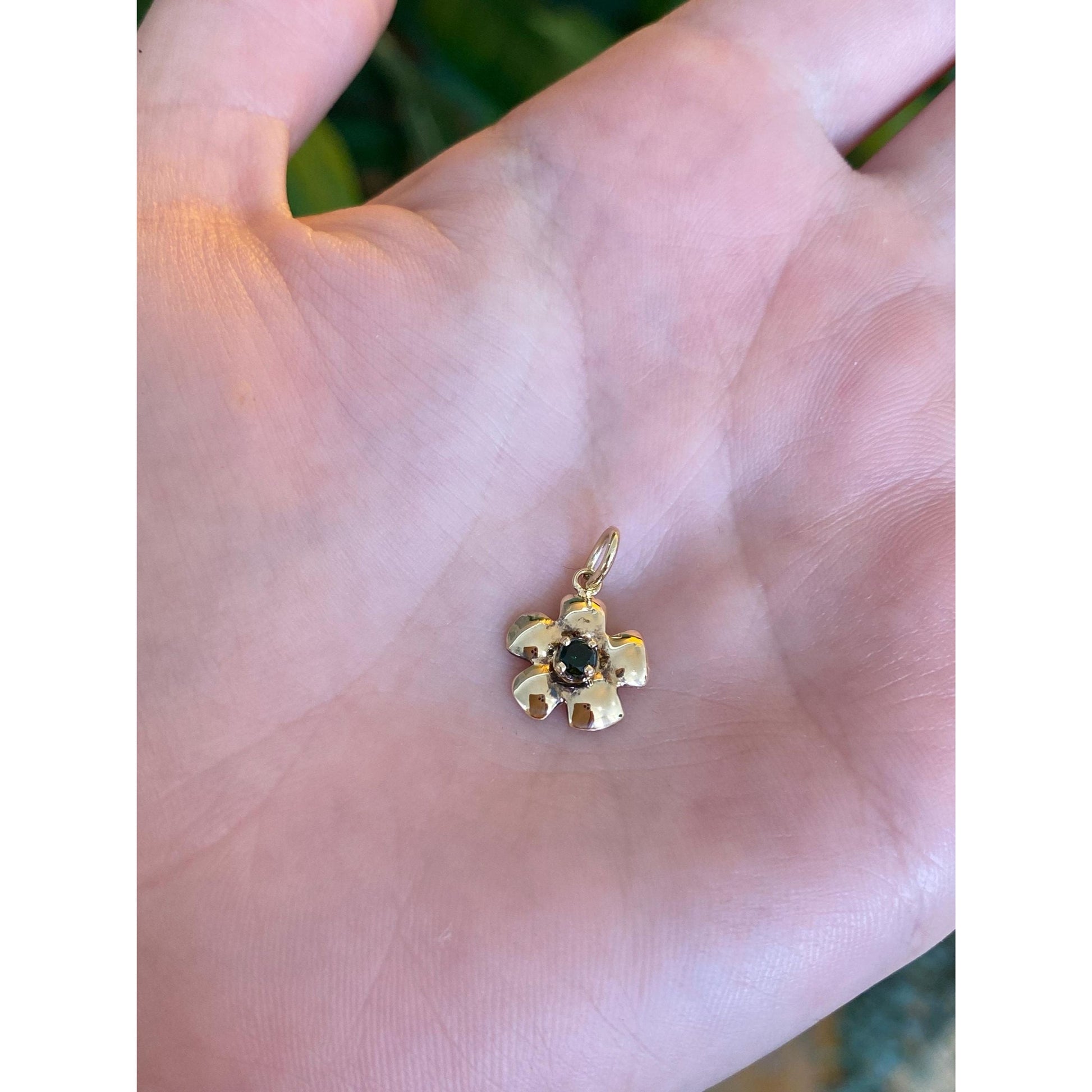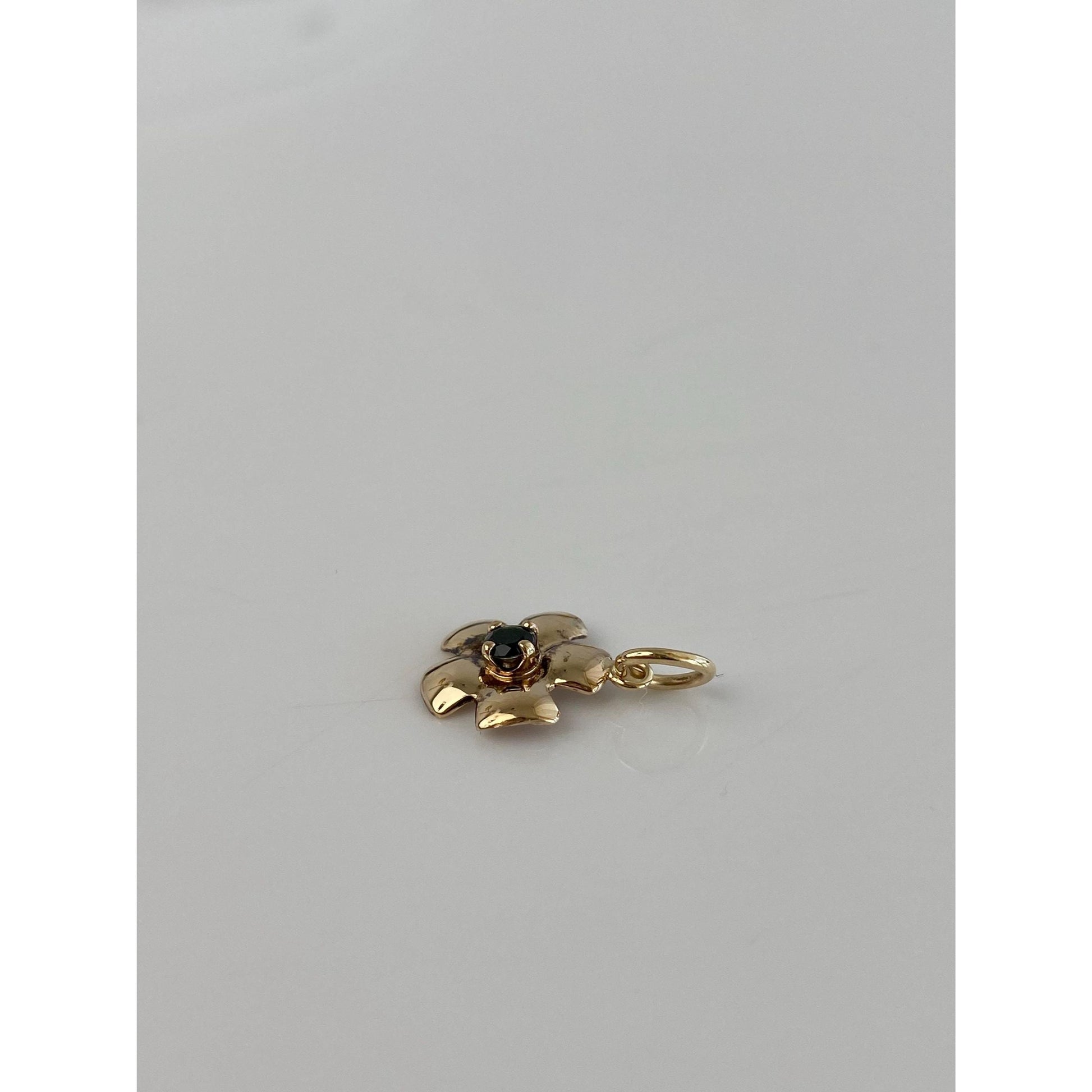 Vintage Solid 14k Yellow Gold Green Spinel Flower Charm