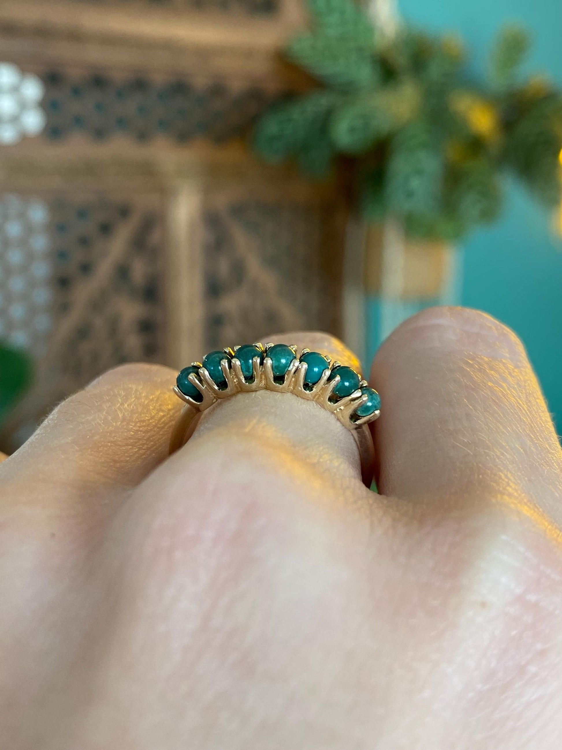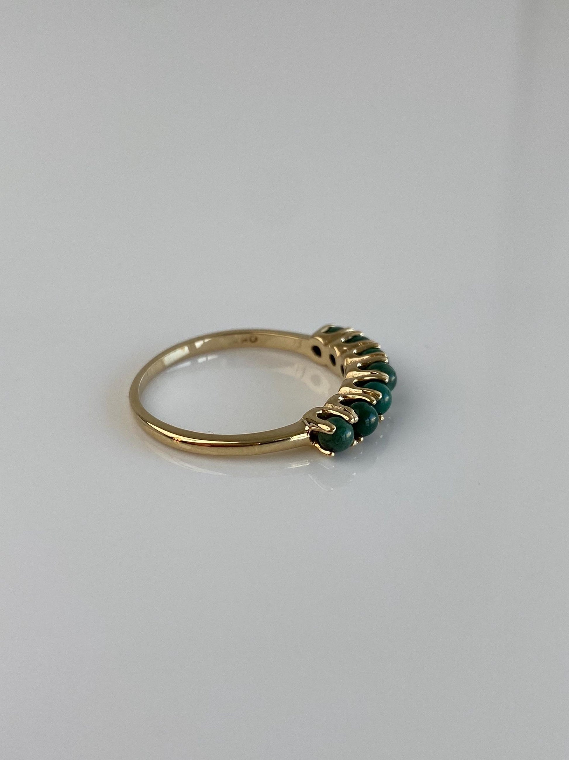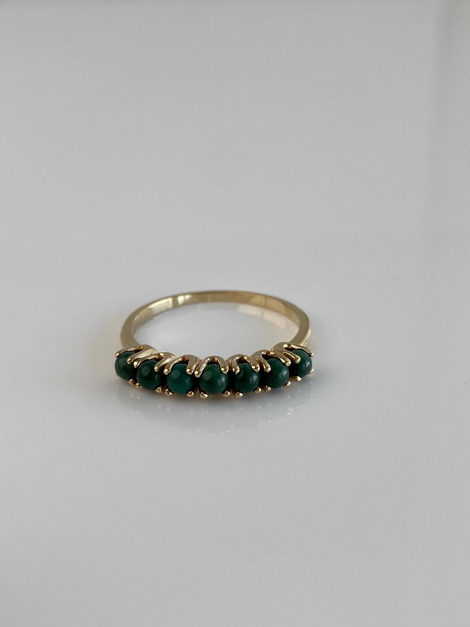 Vintage Solid 14k Yellow Gold Green Stone Ring Band - Size 7.75