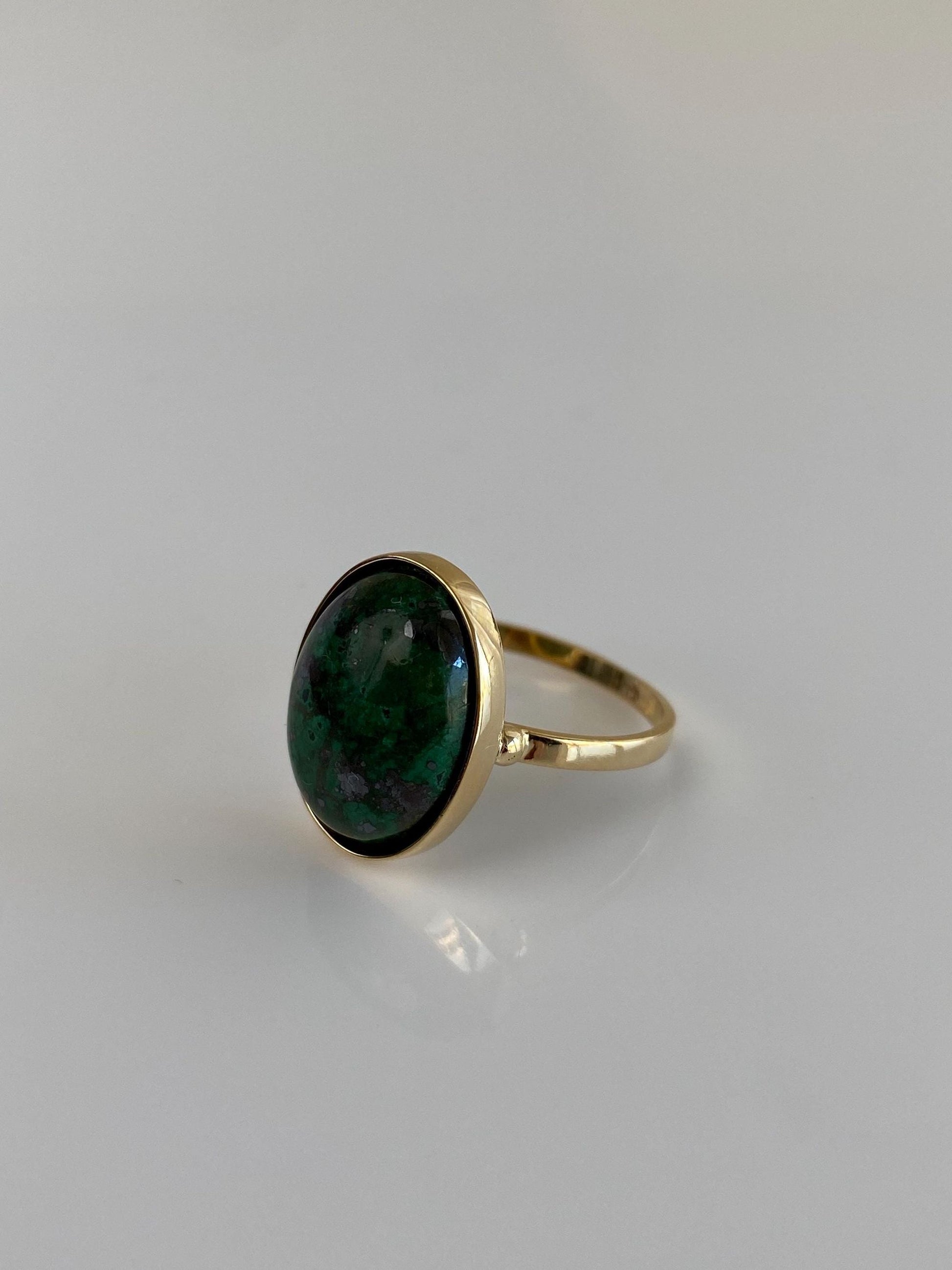 Vintage Solid 14k Yellow Gold Green Stone Ring - Size 6.5