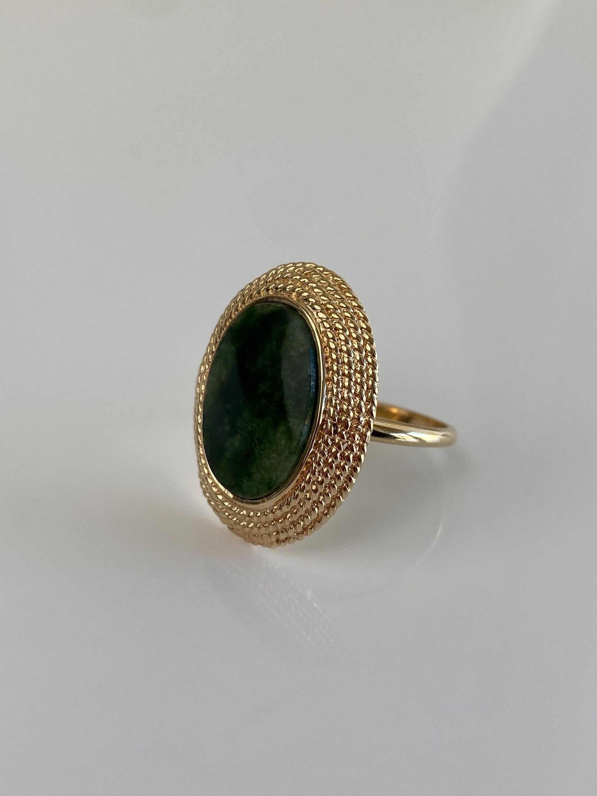 Vintage Solid 14k Yellow Gold Green Stone Ring - Size 7.25