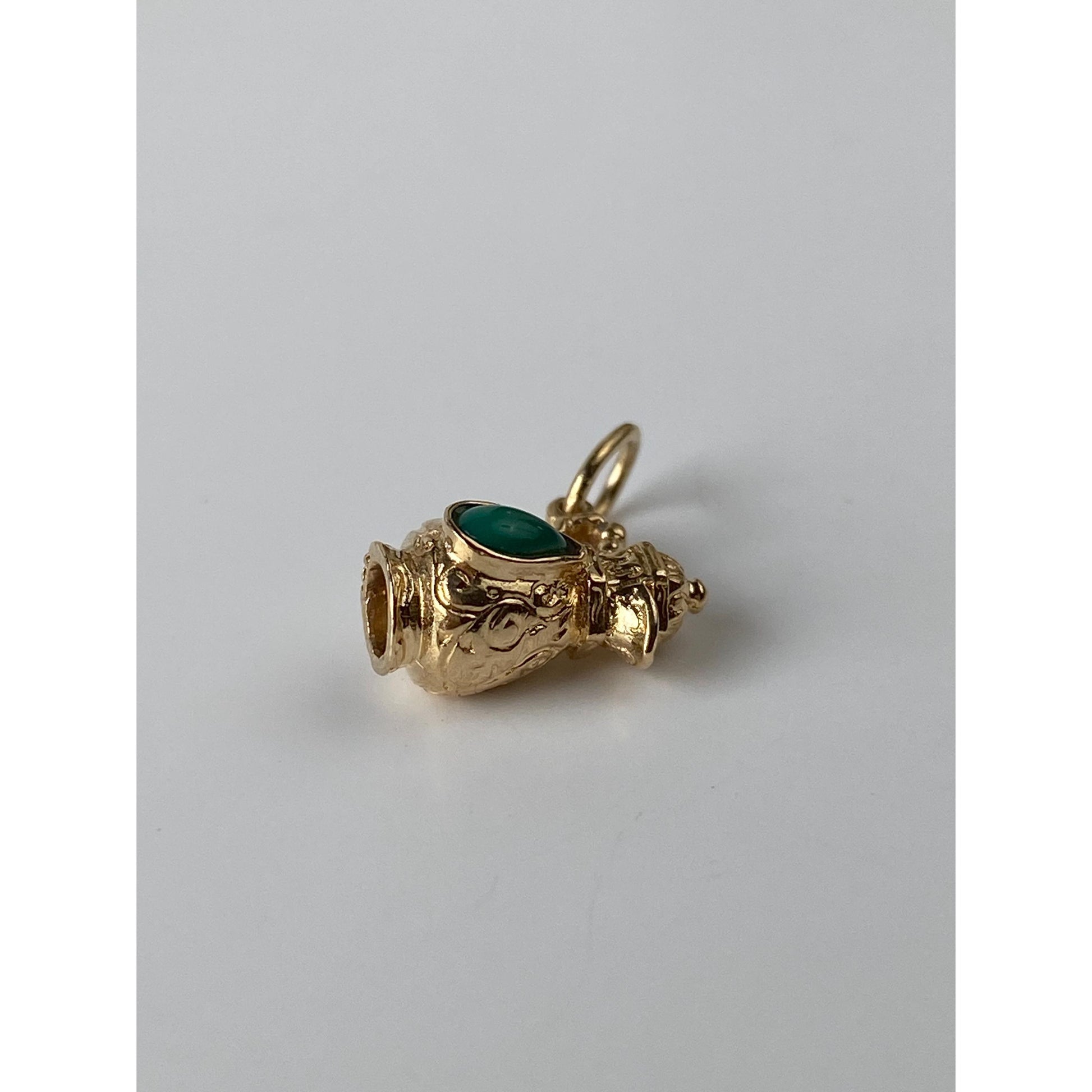 Vintage Solid 14k Yellow Gold Green Stone Vessel Charm