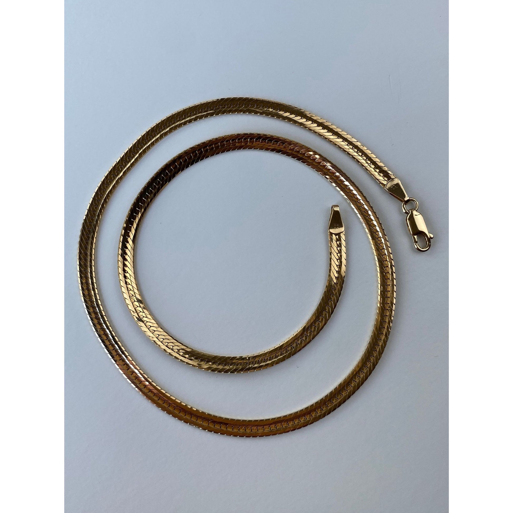 Vintage Solid 14k Yellow Gold Herringbone Chain Necklace - 18.25 inches