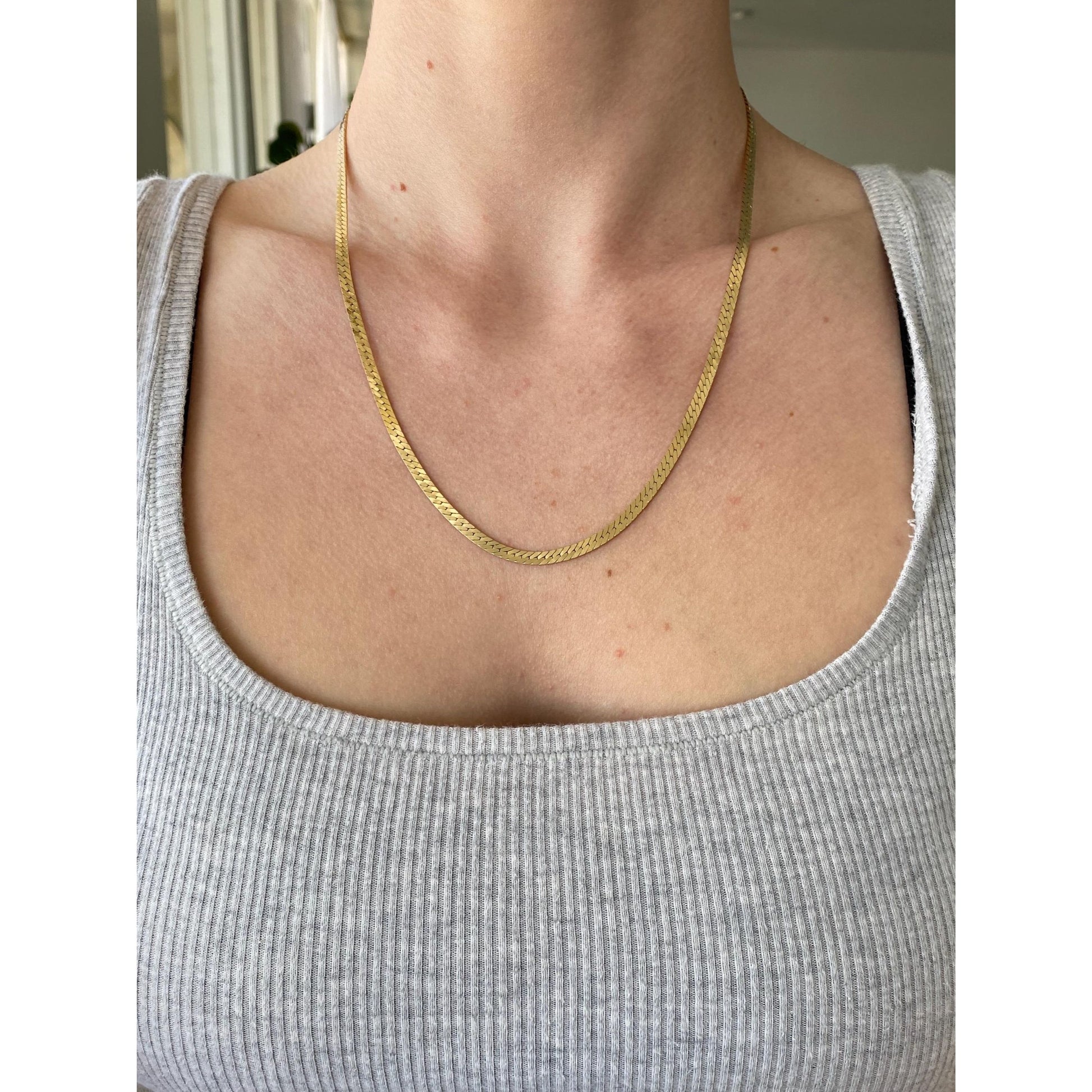 Vintage Solid 14k Yellow Gold Herringbone Chain Necklace - 20 inches