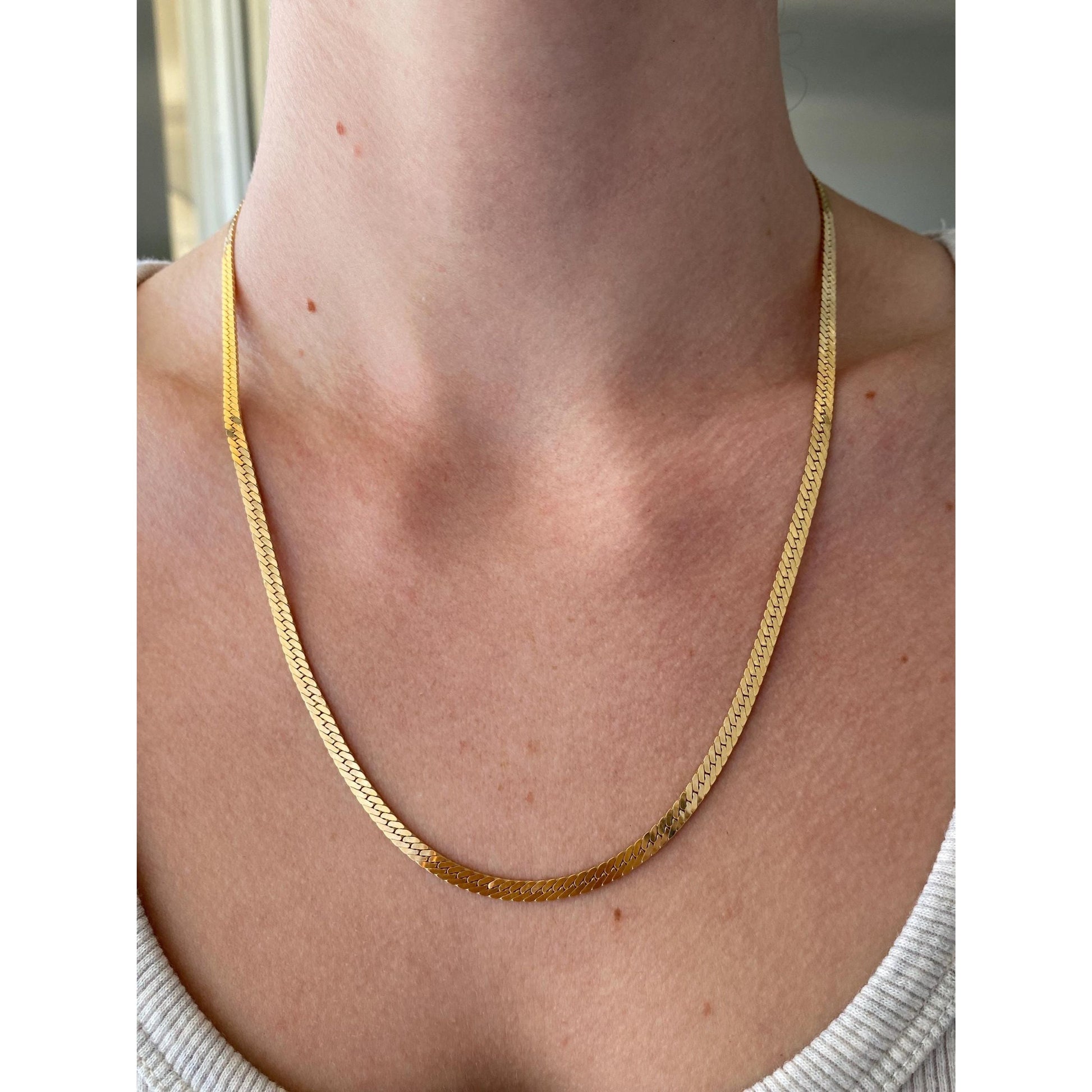 Vintage Solid 14k Yellow Gold Herringbone Chain Necklace - 20 inches