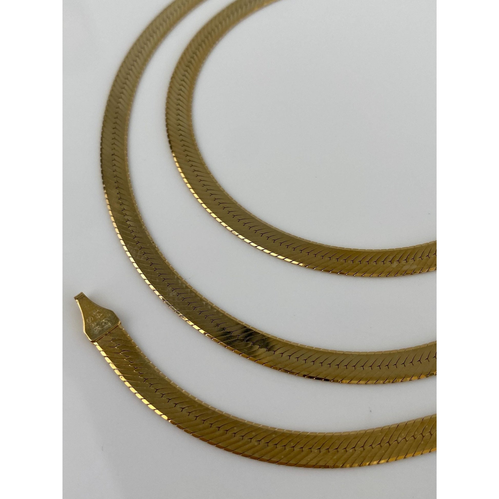 Vintage Solid 14k Yellow Gold Herringbone Chain Necklace - 24 inches