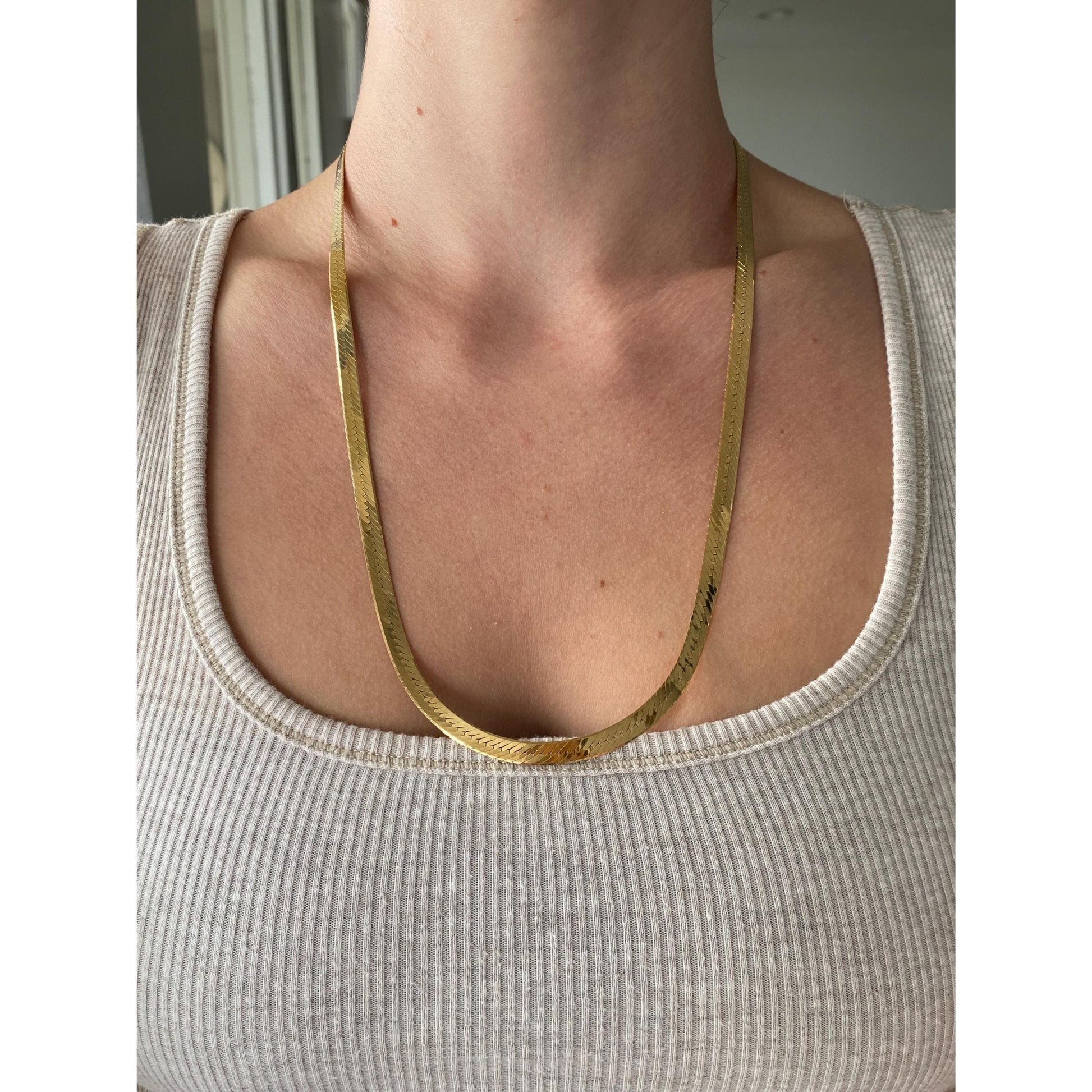Vintage Solid 14k Yellow Gold Herringbone Chain Necklace - 24 inches