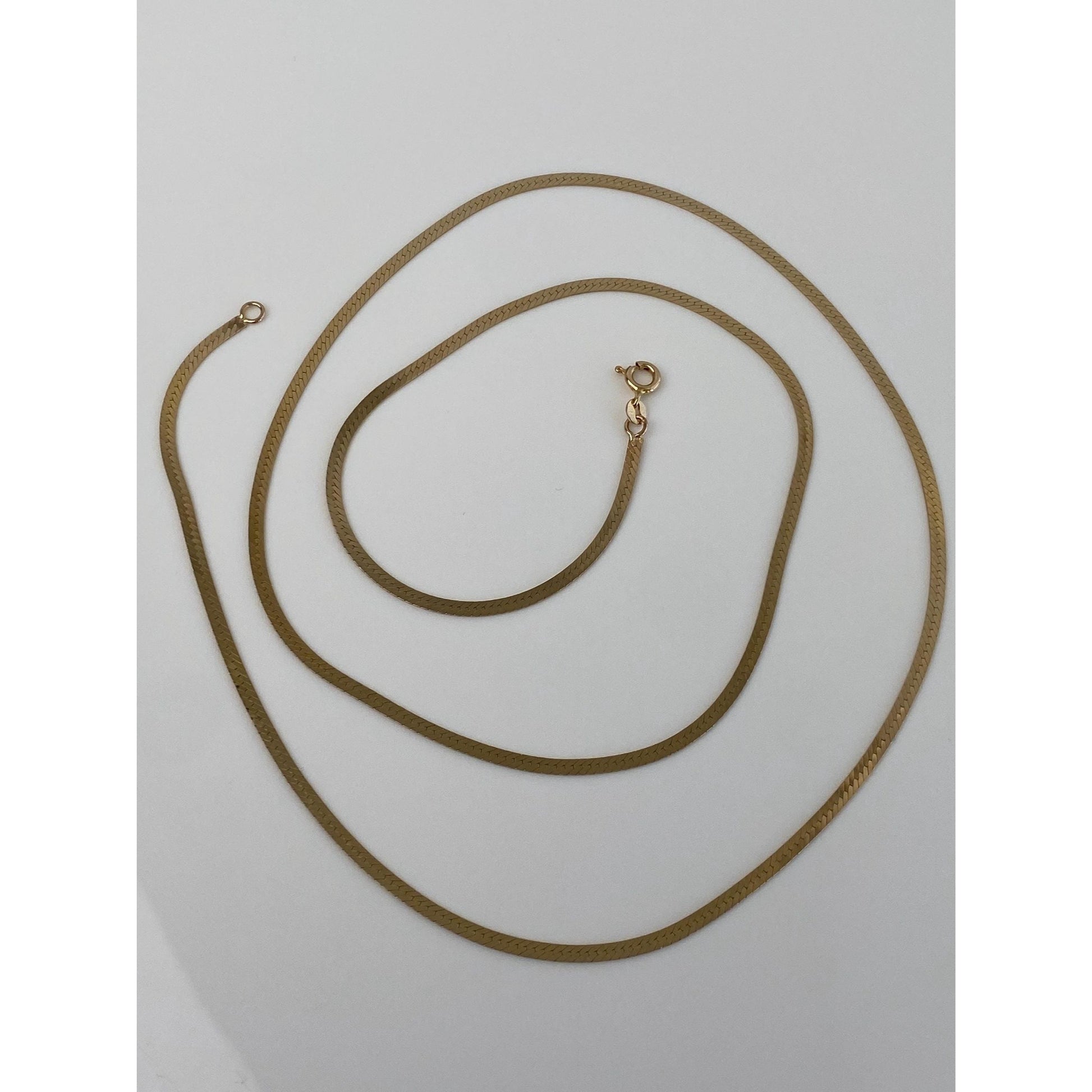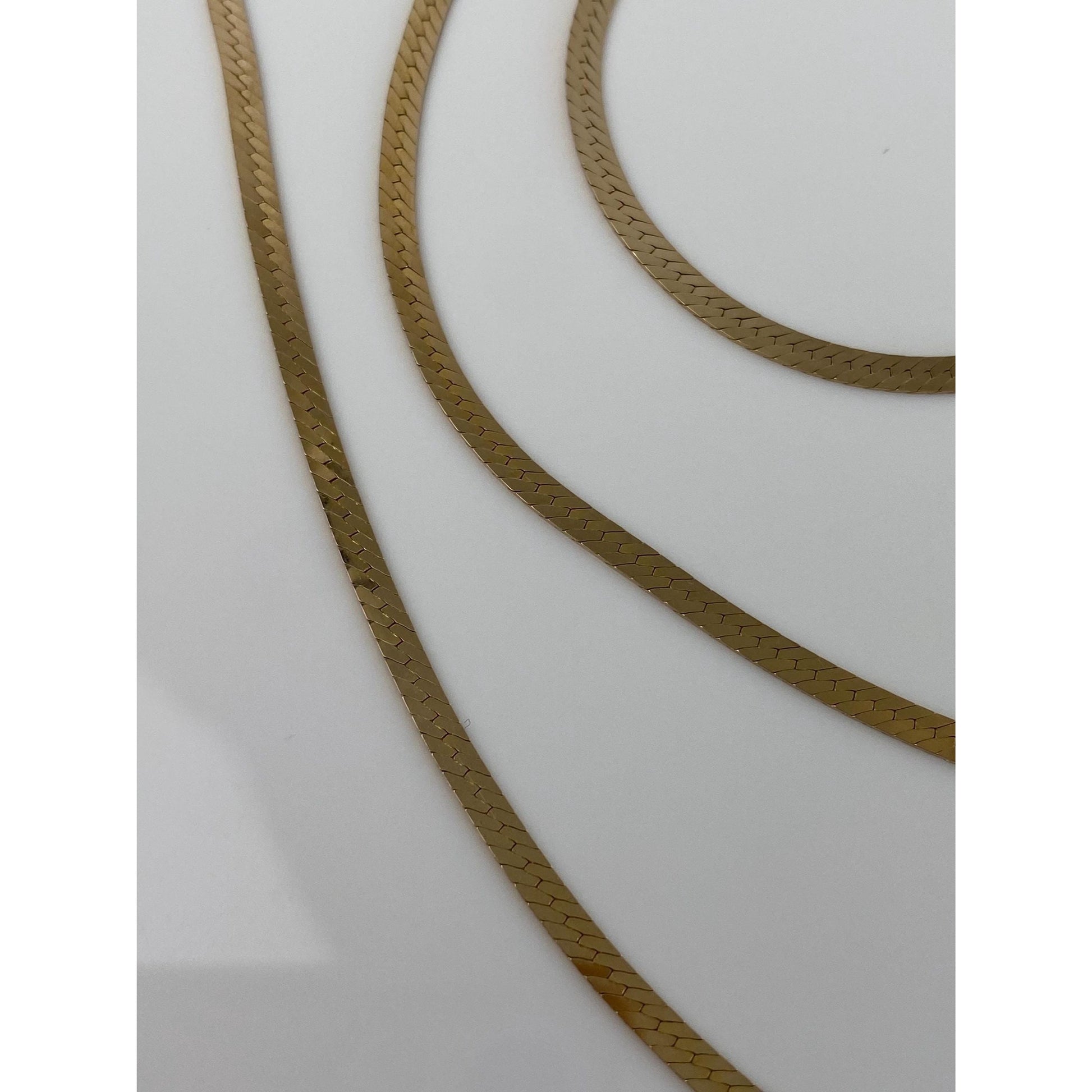 Vintage Solid 14k Yellow Gold Herringbone Chain Necklace - 30 inches