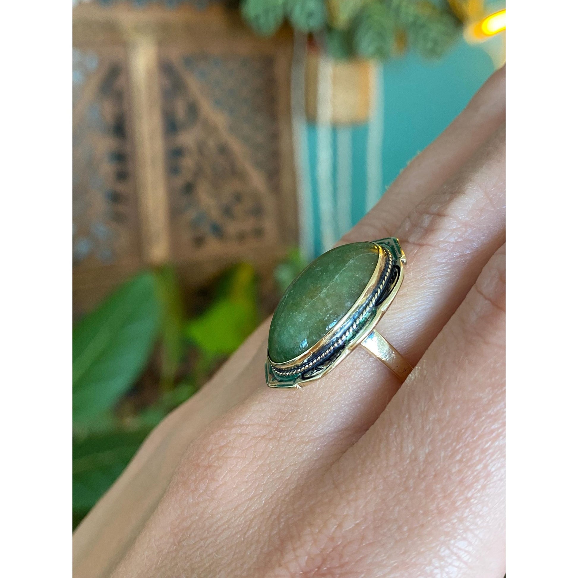 Vintage Solid 14k Yellow Gold Jade & Enamel Ring - Size 5.25 - Fine Estate Jewelry - Real Genuine Gold