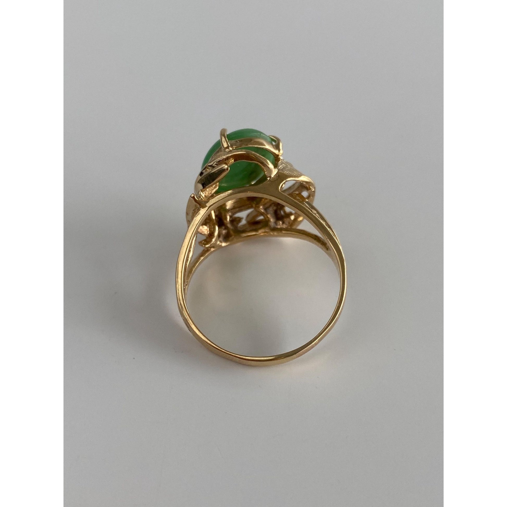 Vintage Solid 14k Yellow Gold Jade Ring - Size 9.25