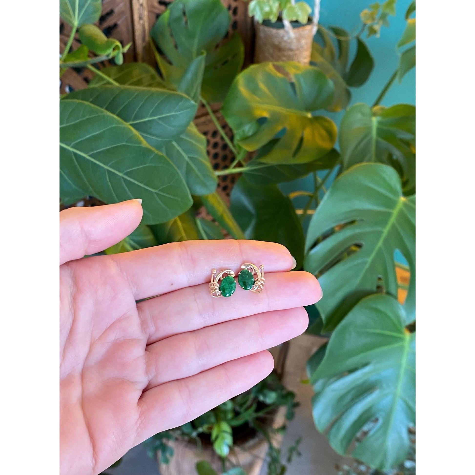 Vintage Solid 14k Yellow Gold Jade Stud Earrings