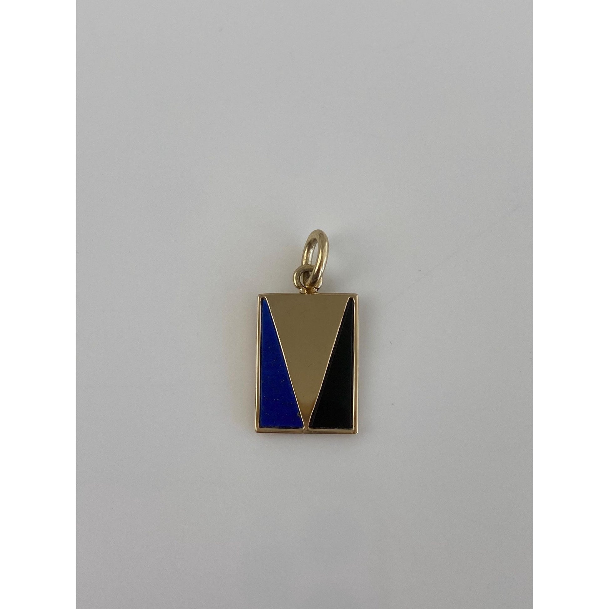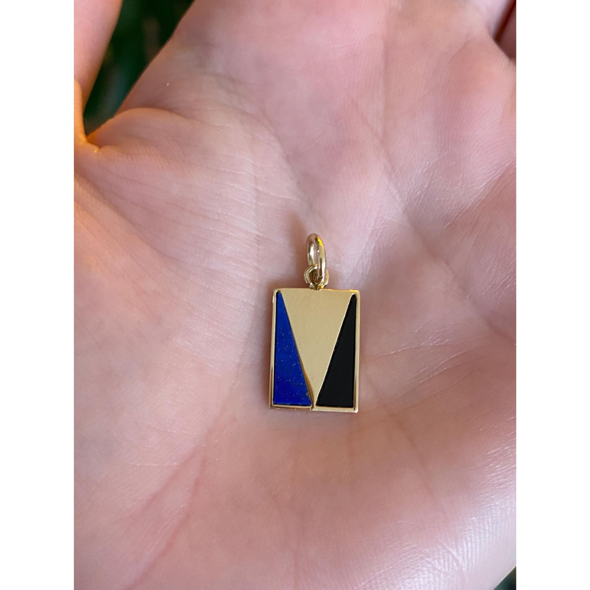 Vintage Solid 14k Yellow Gold Lapis & Onyx Cufflink Conversion Charm