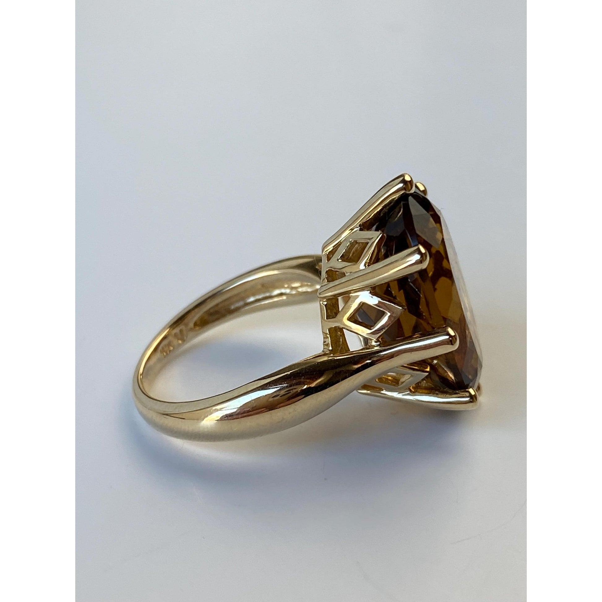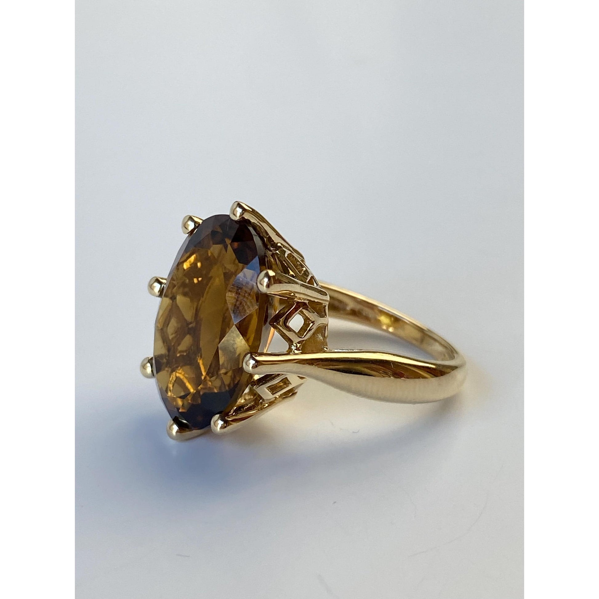 Vintage Solid 14k Yellow Gold Large Citrine Ring - Size 7