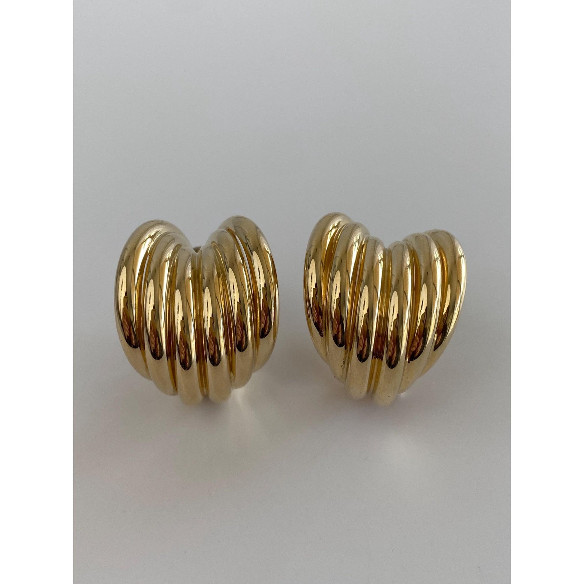 Vintage Solid 14k Yellow Gold Large Layered Drop Earrings