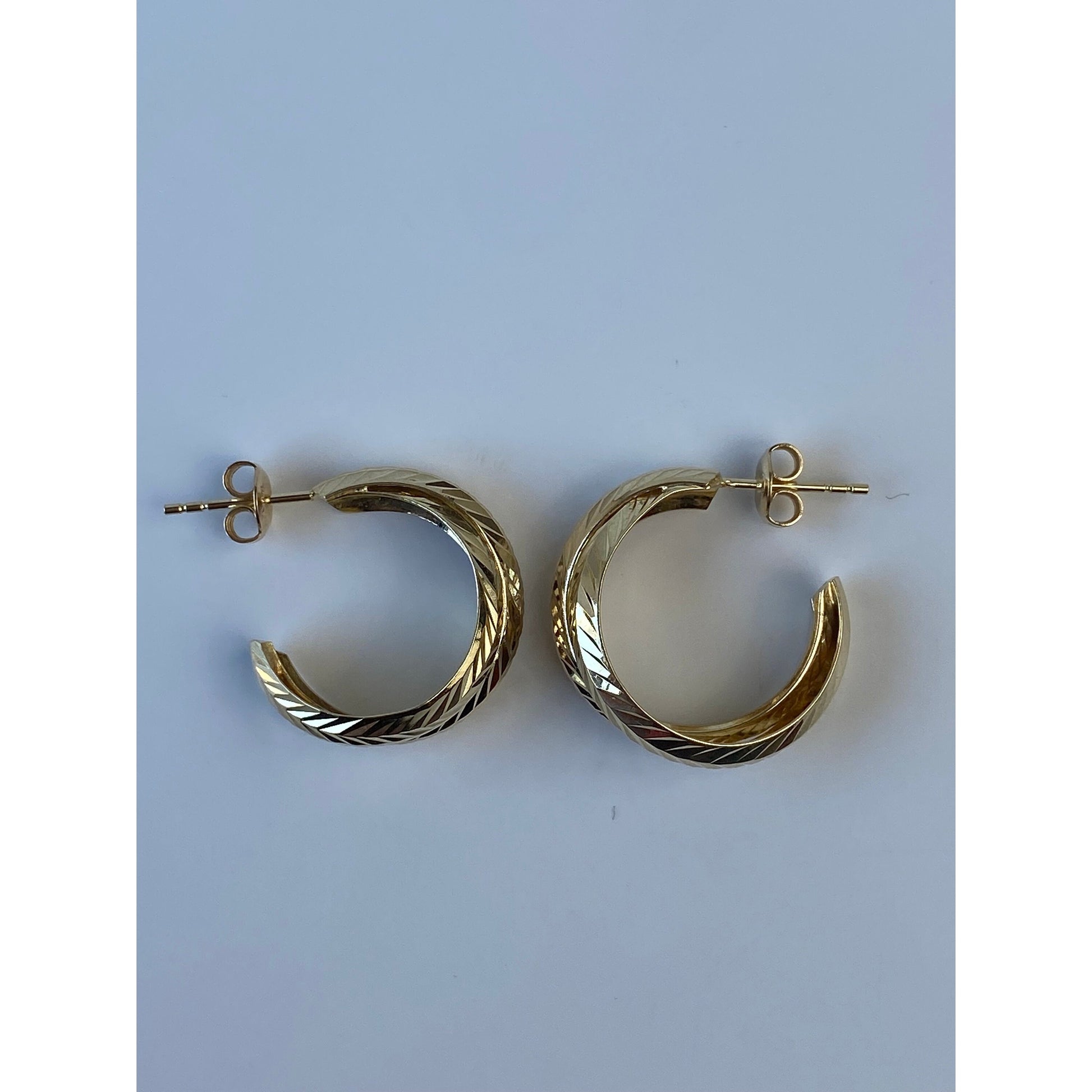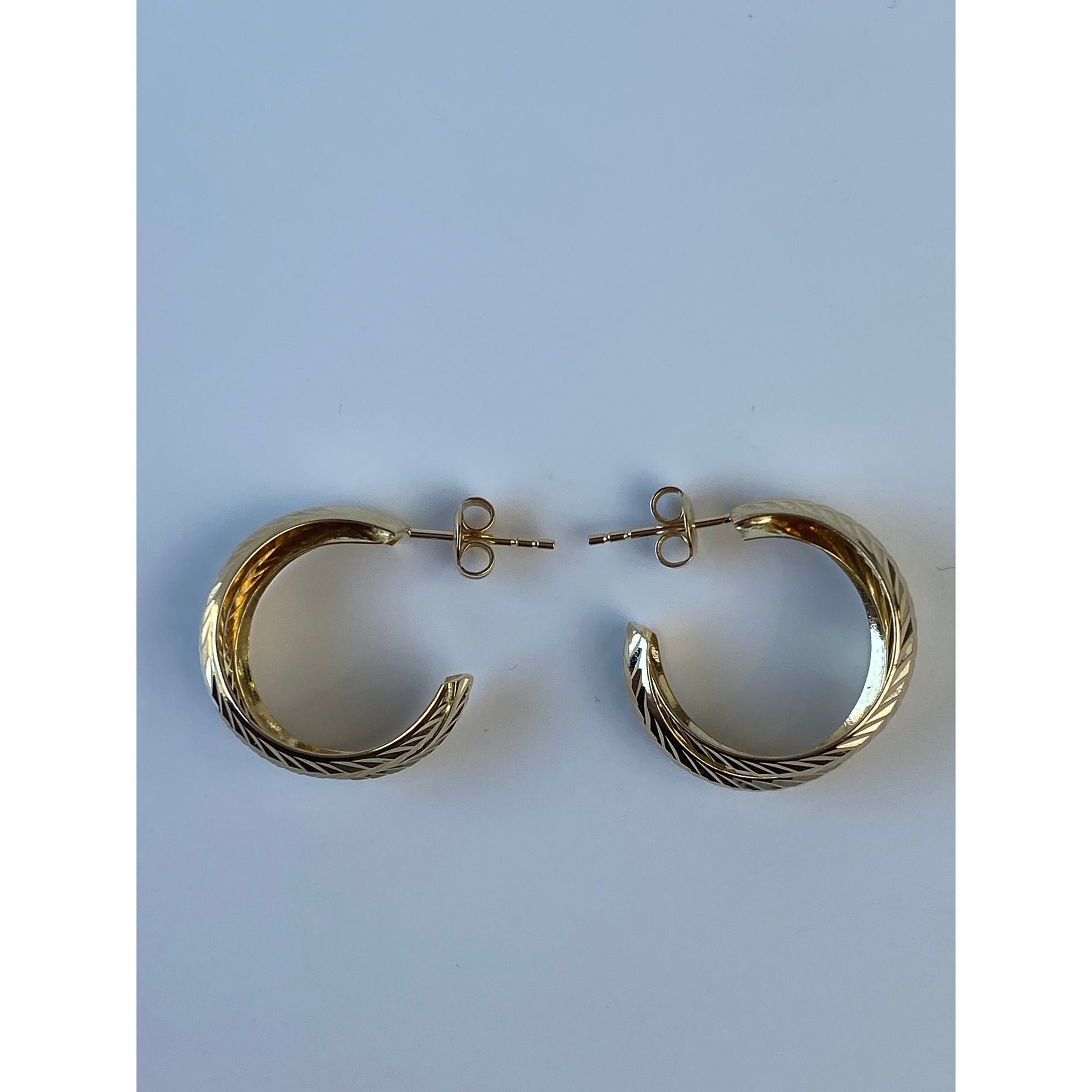 Vintage Solid 14k Yellow Gold Layered Diamond Cut Hoop Earrings
