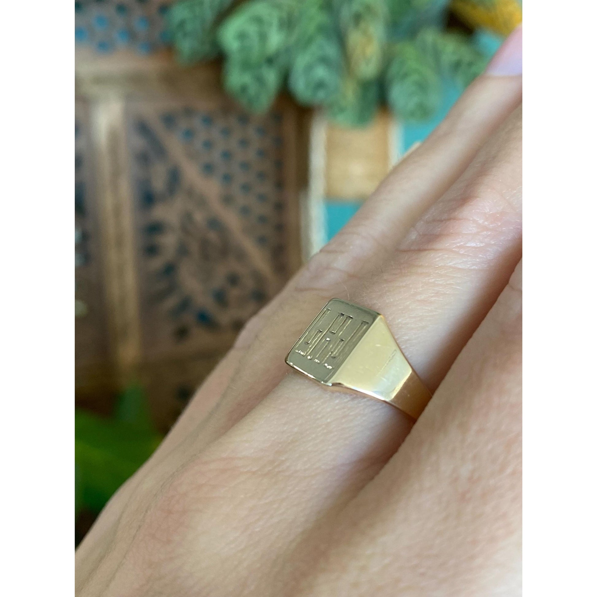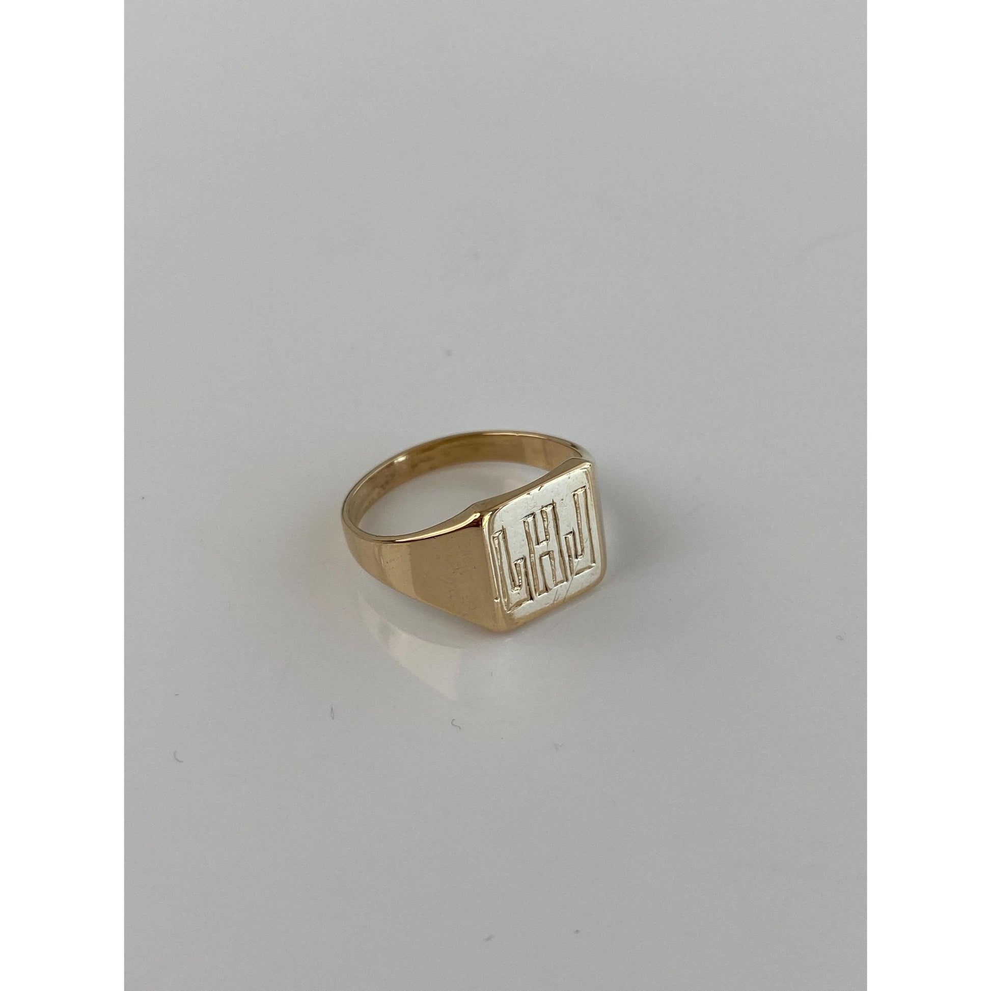 Vintage Solid 14k Yellow Gold LHJ Signet Ring - Size 6.5